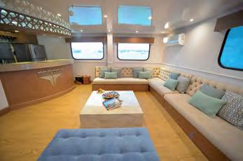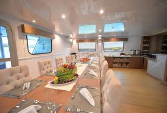 Flachbild-TV mit SAT-Anschluss, Radio mit Musikkanal sowie großen Panoramafenstern, die man öffnen kann (außer auf dem Kabinendeck, hier gibt es Bullaugen, die nicht geöffnet werden können).