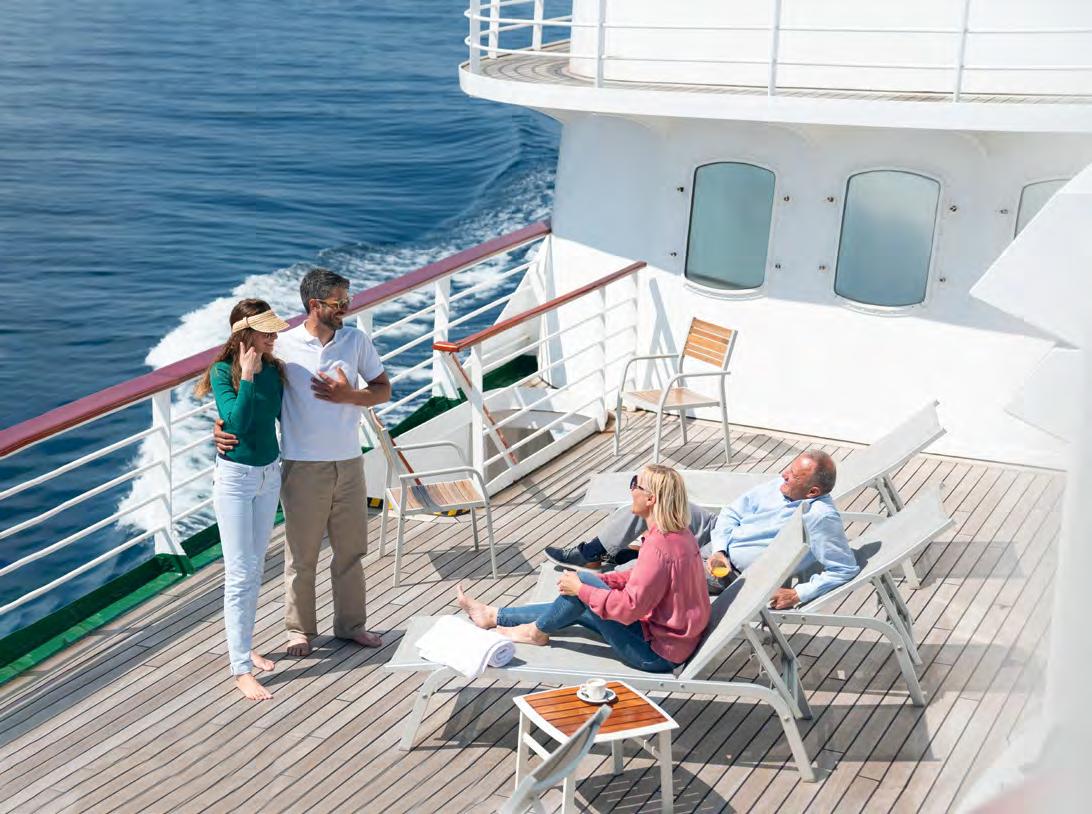 Spannende Vor träge und fröhliche Stunden im Restaurant, Freizeit in der privaten Kabine und Sonnenuntergänge auf dem Sonnendeck genießen Sie ganz entspannt – ohne den Trubel, den man üblicherweise auf KreuzfahrtGiganten veranstaltet.