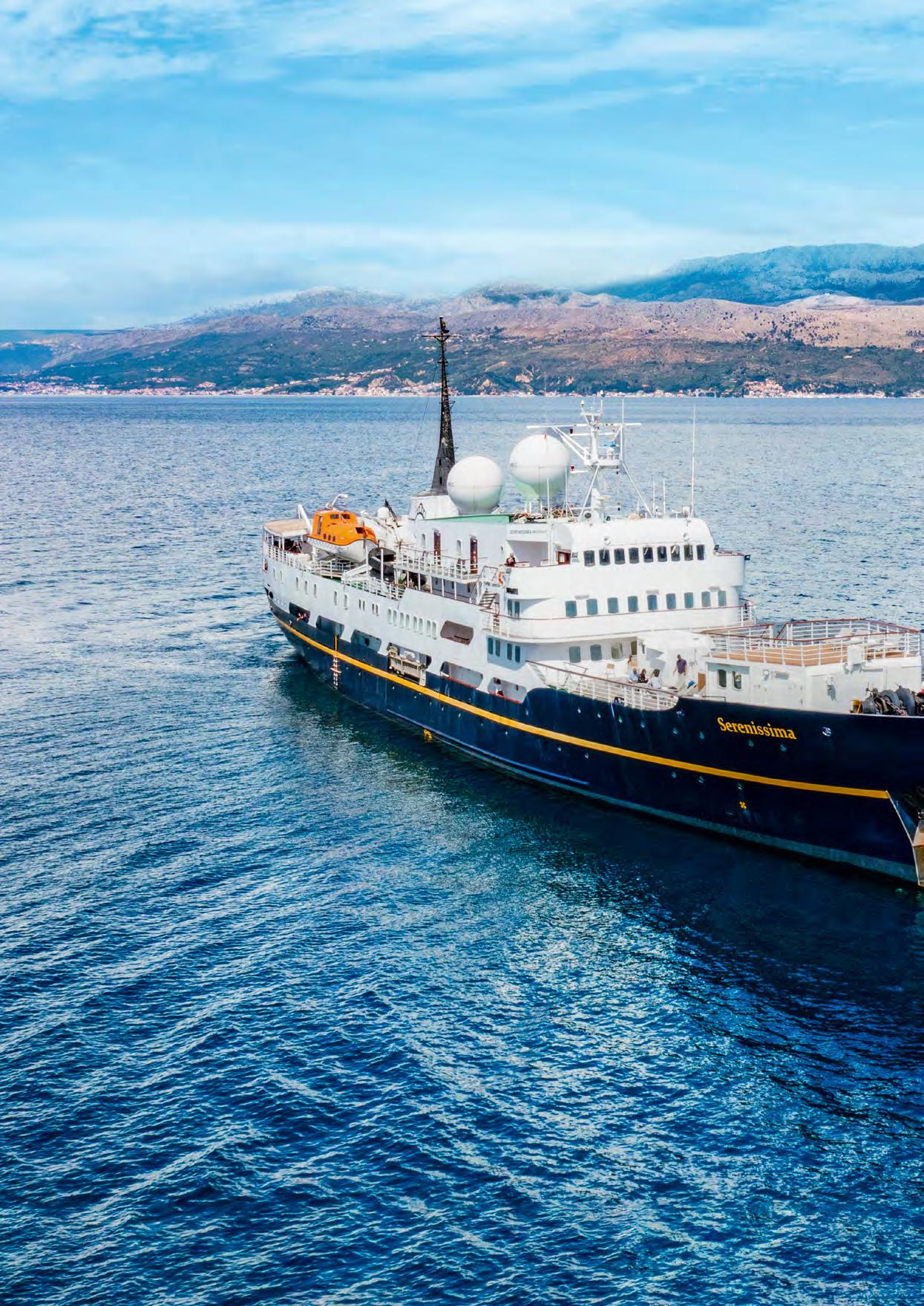 Angenehmes Reisen in Club-Atmosphäre erwartet Sie auf der MS Serenissima, die wir über einen großen Teil des Jahres chartern. Auf unserem neu entdeckten SchiffsJuwel mit nur 53 Kabinen, erfahrenem Expeditions-Team und eigenem Bordarzt können wir Reisen ganz nach dem Geschmack unserer Gäste ausrichten und ihnen die optimale Erkundung beliebter und neu erschlossener Reiseziele ermöglichen. Als schwimmender Lernidee-Club auf den Ozeanen dieser Welt bringt die MS Serenissma auch auf Reisen mit Expeditions-Charakter hohen Komfort, hervorragende Küche und besten Service sogar in die entlegensten Naturparadiese.