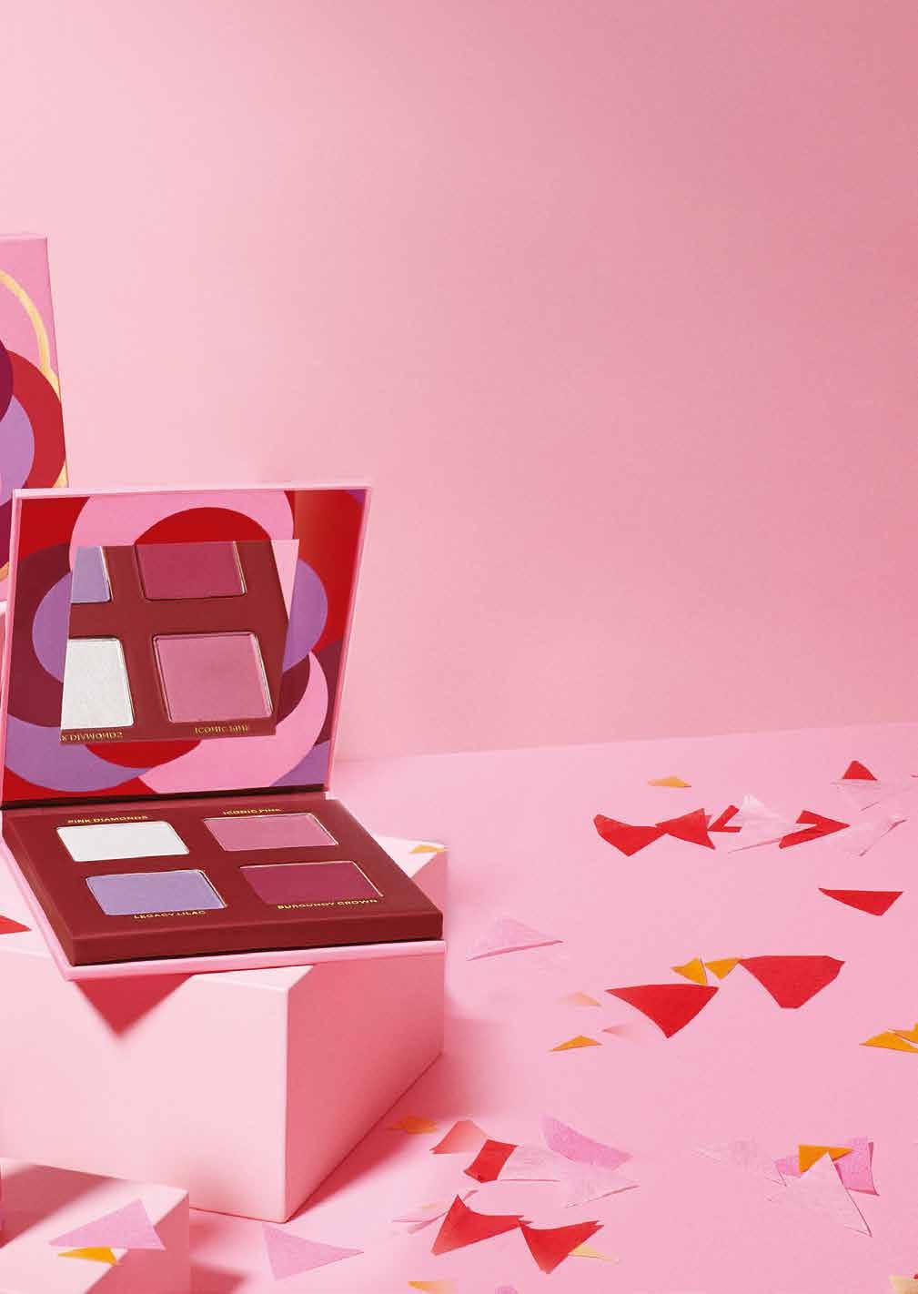 Limited Edition Mary Kay® 60th Anniversary Eye Shadow Palette, Legacy Lilac (bas), Iconic Pink (bas), Pink Diamonds (highlight) och Burgundy Crown (Framhäv)
