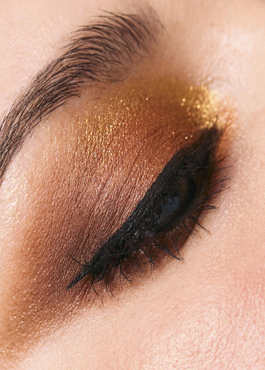 Flammende dramatik! Dette look kombinerer glitrende, flammeagtige skygger med en markeret globelinje og en knivskarp eyeliner – perfekt, når du vil udstråle selvtillid, mod og mystik.