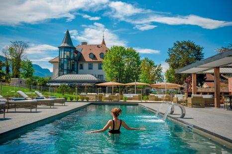 Près d’Aix-les-Bains, à Gresy-sur-Aix, il existe un boutique-hôtel historique, le Château Brachet*****, où tout, absolument tout, est beau : le château à l’élégance victorienne avec ses deux tours, son parc paysager de six hectares où la nature est reine (arbres centenaires, massifs de fleurs, bosquets, fontaine…), son golf, sa piscine de dix-huit mètres, sa décoration intérieure si réussie où chaque objet a été chiné avec goût… et aussi le petit spa qui attire de nombreux clients.