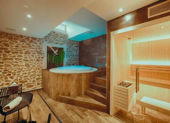 Alors, en 2022, Delphine et Romain ont créé un petit espace spa dans une salle où se déroulaient initialement les banquets. C’est un petit spa, imaginé tel un cocon intimiste et zen à l’esprit minéral, aux lignes épurées et aux matériaux naturels, avec un Jacuzzi, un sauna et une douche expérience. C’est un énorme succès ! 50% des clients de l’hôtel (dix chambres) profitent du spa (25 € par heure et par personne). Il leur suffit de réserver pour avoir la privatisation du lieu pour deux à quatre personnes. Un beau moment de détente absolu leur est assuré en toute quiétude.