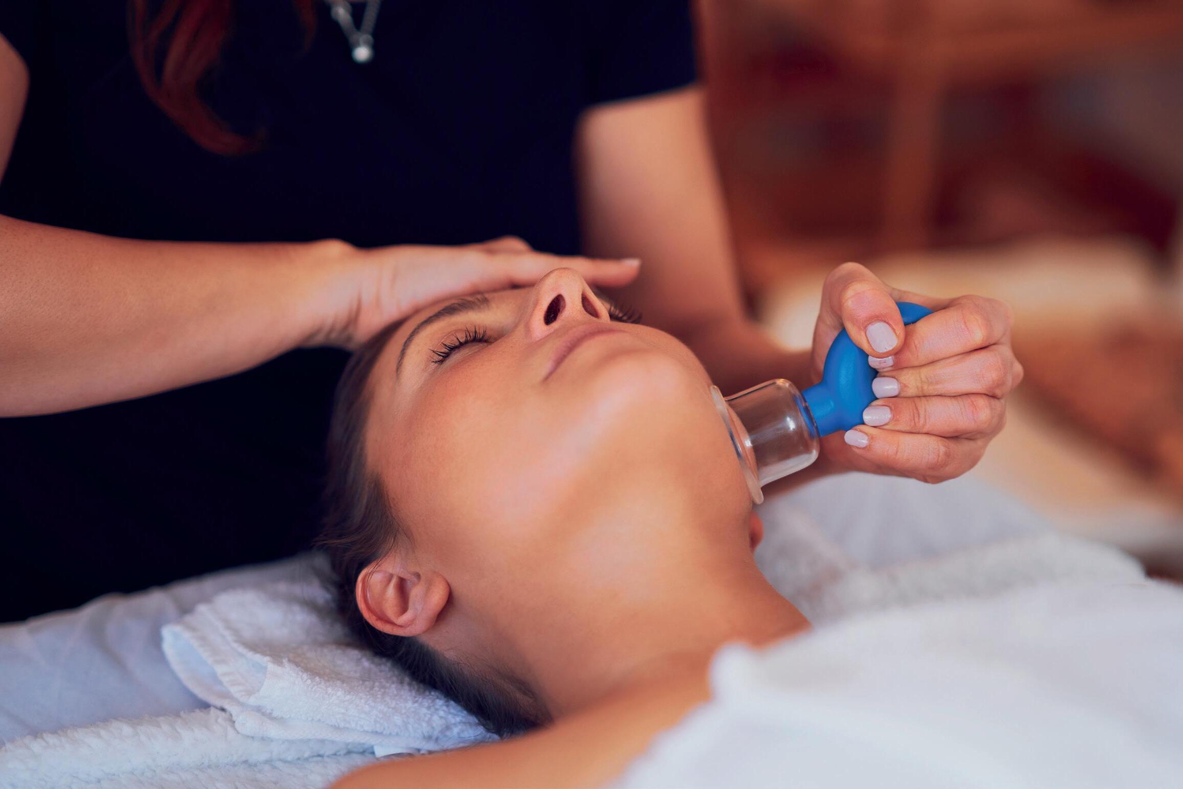 Sur le visage, les ventouses peuvent être utilisées du centre vers l’extérieur et de haut en bas au niveau du cou pour favoriser le drainage. Des usages plus localisés des ventouses, notamment au niveau des petites ridules de la bouche et des yeux, peuvent aussi être pertinents.