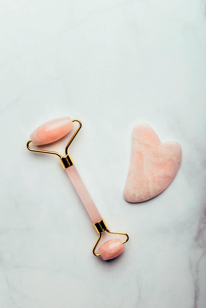 Issu également de la médecine traditionnelle chinoise, le gua-sha se distingue par sa forme qui épouse les contours du visage. “Gua-sha” signifie “qui vient gratter le feu” en Chinois.