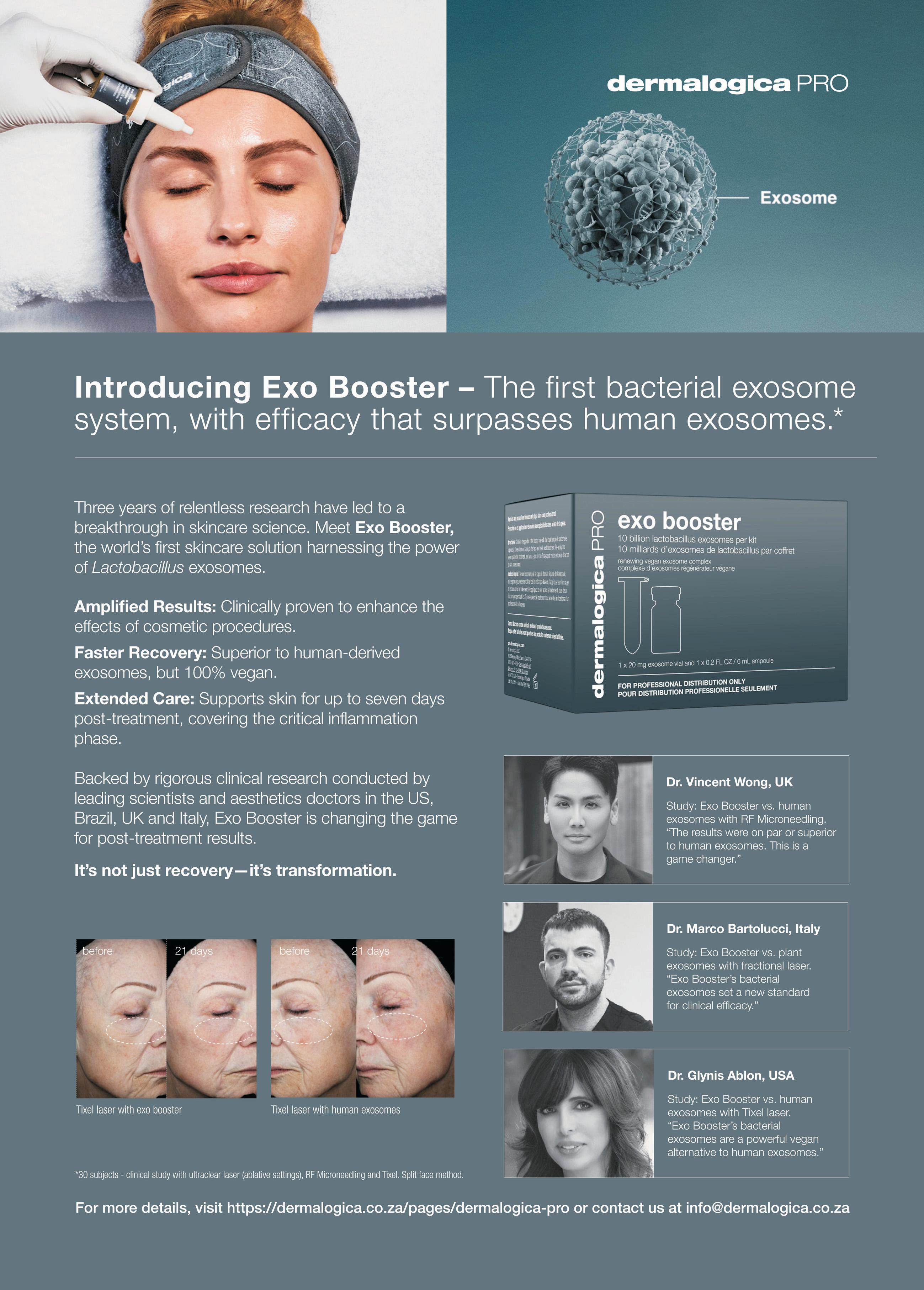 Then there's exosome therapy (refer LNE & Spa Magazine, Issue 109), which is a newer, cuttingedge alternative. Exosomes are tiny vesicles derived from stem cells, and they deliver healing factors directly to the skin, promoting rapid regeneration and reducing fine lines and wrinkles. Unlike PRP, exosome therapy is more precise, with quicker recovery times.