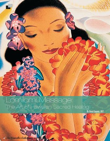 Lomilomi also includes range-of-motion work, deeptissue techniques and, most importantly, the full presence of loving touch. Every cell is blessed to create balance (lokahi). The nervous system is encouraged to slow down, thereby creating the space for techniques to be received rather than pushing through a blockage in the muscle tissue.