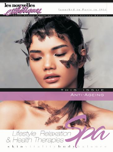Les Nouvelles Esthétiques South African Edition I Max Cafe P. O. Box 81204, Parkhurst Johannesburg, South Africa 2120 I Tel: +27 83 267 2773 e-mail: info@lesnouvelles.co.za www.lesnouvelles.co.za I Publisher/Creative Director: Anthony de Freitas e-mail: tony@maxcaf e.co.za I Managing Editor: Dr. Nadine de Freitas e-mail: nadine@maxcafe.co.za I Editorial Assistant: Sarene Kloren editorial @lesnouvelles.co.za I Ad vertising Enquiries: Dr Nadine de Freitas e-mail: info@lesnouvelles.co.za I Subscription Enquiries: Tel: +27 83 267 2773 e-mail: info@lesnouvelles .co.za or visit: www.lesnouvelles.co.za Les Nouvelles Esthetiques International Publisher I 7, avenue Stephane Mallarme 75017 PARIS Tel: 01 43 80 06 47 Fax: 01 43 80 83 63 www.nouvelles-esthetiques.com I Fondateur: H. Pierantoni I Directeur de la Publications: Jeannine Cannac-Pierantoni I Redactrice en chef: Michéle de La ttre-Pierantoni I International Editions • Argentina • Baltic • Benelux • Brazil • Bulgaria • Canada • China • France • Greece • Hong Kong • Hungary • Israel • Italy • Japan • Mexico • Poland • Portugal • Romania • Singapore • South Africa • Spain • Taiwan • Turkey • Ukraine • USA • Yugoslavia Doc: LNE Paris skin vitality body balance A Professional take on SPA Business, Health Therapies, Products & Simple Relaxation 2023*ISSUE*97 cover CONTENTS *97