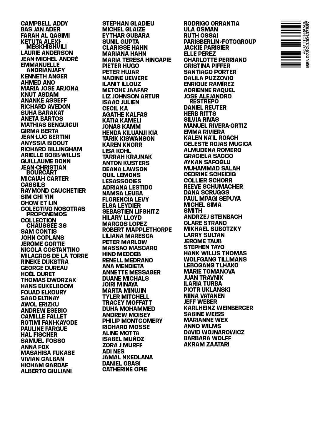 LA COLLABORATION ACTIVE DE BARBICAN CENTRE, APERTURE, INA, INSTITUT POUR LA PHOTOGRAPHIE, ÉCOLE NATIONALE SUPÉRIEURE DE LA PHOTOGRAPHIE, ASSOCIATION DU MÉJAN, MONOPRIX ARLES, MUSEON ARLATEN – MUSÉE DE PROVENCE, ABBAYE DE MONTMAJOUR, MUSÉE RÉATTU, MUSÉE DE LA CAMARGUE, FONDATION MANUEL RIVERA ORTIZ, CARRÉ D’ART – MUSÉE D’ART CONTEMPORAIN DE NÎMES, CARRÉ D’ART – BIBLIOTHÈQUE DE NÎMES, COLLECTION LAMBERT AVIGNON, FRAC PACA, MUCEM, CENTRE PHOTOGRAPHIQUE MARSEILLE, MUSÉE ESTRINE, CENTRE DE LA PHOTOGRAPHIE DE MOUGINS, ASSOCIATION JEAN VILAR.