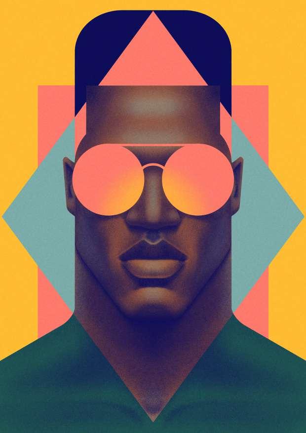 « J'ai créé mon outil numérique pour imiter le tracé du crayon, cet aspect fait-main ». Le plus souvent présentés de face, ces portraits jouent avec les courbes, les lignes, la symétrie, les plans. Sublimés dans une palette soufflant le chaud et le froid (« inspirée de couchers de soleil californiens »), ils célèbrent la diversité du genre humain et témoignent, aussi, d'une passion immodérée pour la culture pop. Dans ce portfolio voisinent ainsi le regard pétillant de Pharrell Williams ou la bobine, un brin plus patibulaire, de Kanye West. « C'est vrai, j'exagère parfois les expressions du visage », sourit l'intéressé, qui cherche d'abord à établir une connexion avec le spectateur. À l'instar de cette Victoria à l'attitude rageuse, véritable allégorie de l'émancipation féminine, et dont le regard caché derrière des lunettes de soleil nous en met plein la vue. Julien Damien À visiter / samyhalim.myportfolio.com c @samyhalimart À lire / L'interview de Samy Halim sur lm-magazine.com