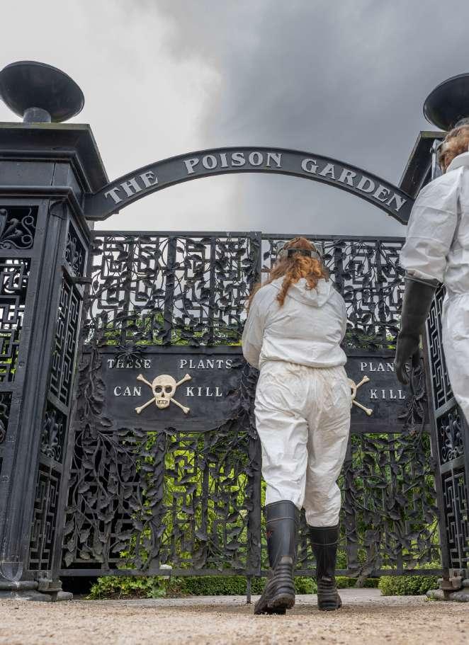 Il faut d’abord franchir un portail noir affublé de deux têtes de mort. Derrière cette sinistre entrée se dévoile alors le plus mortel des jardins. Pour cause, le Poison Garden regroupe une centaine de plantes toxiques, hallucinogènes et même létales... Cet étrange lieu a vu le jour en 2005 à l’initiative de la duchesse de Northumberland.