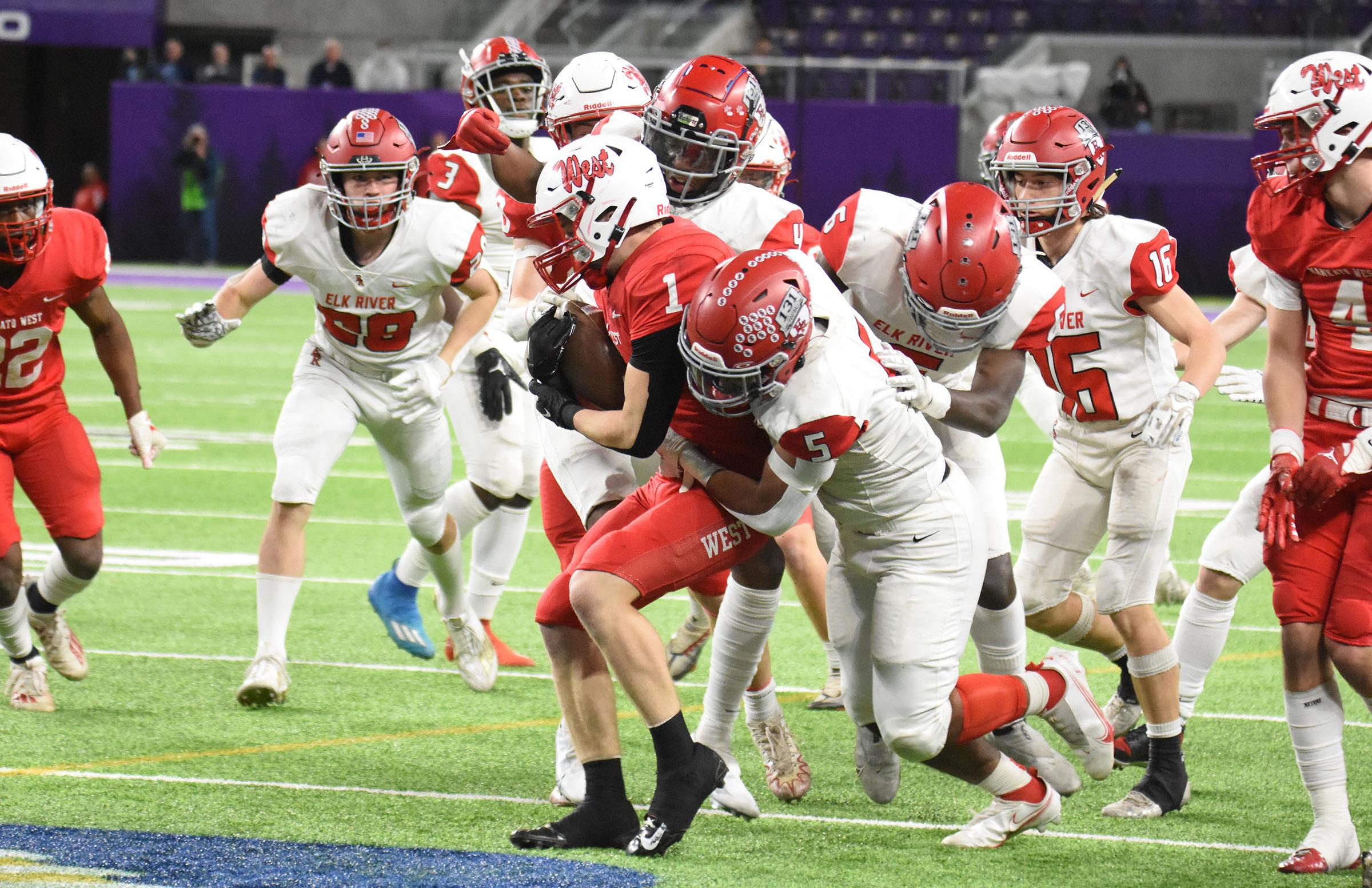 “It was a stress-reliever when I scored,” said Tapio, who carried six times for 47 yards on the winning eight-play drive and finished with 97 yards. “It’s just a great feeling to get the game-winning touchdown in the state championship. Very few people get that opportunity.”