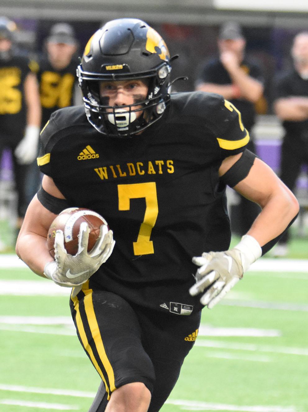 New London-Spicer junior running back Mason Delzer scored on a 4-yard toss to the left side to tie the score at 7-7. Delzer then scored again on a short pass from sophomore quarterback Blake Schultz and the Wildcats had their first lead 14-7 early in the second quarter.