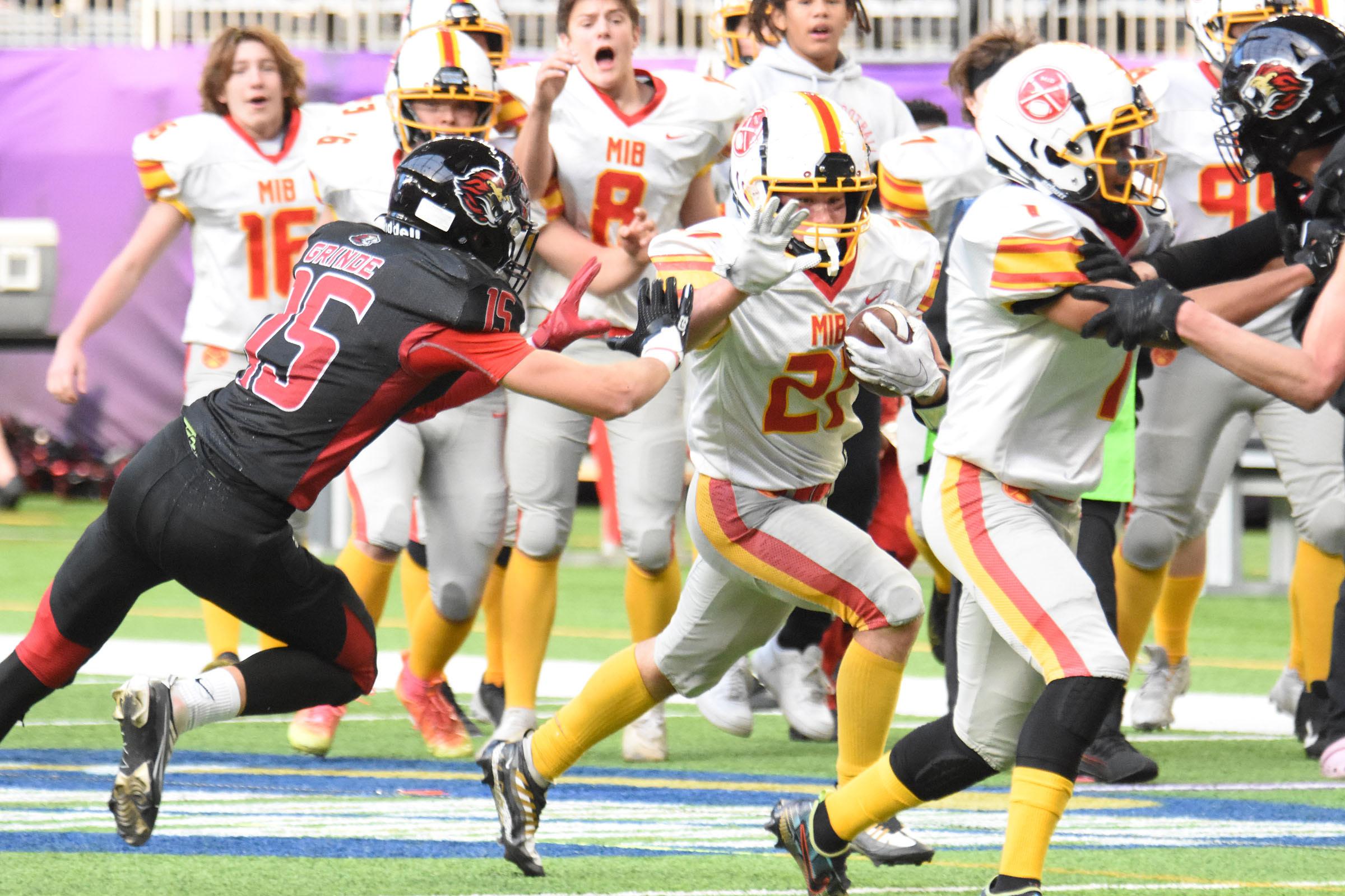 Spring Grove appeared poised to run the Rangers out of U.S. Bank Stadium Dec. 3, but MIB overcame five turnovers and used a last-minute touchdown, finishing an improbable comeback for a wild 28-25 victory. The title came 50 years after the program’s first in 1972 and assured a joyous bus trip home to the Iron Range.