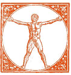 «Si tendano le braccia più in alto possibile sopra la testa, in modo che i gomiti giungano all’altezza della sua sommità; se ora la persona che si trova in questa posizione, con i piedi uniti, viene inscritta in un quadrato di cui le piante dei piedi e le piunte delle dita delle mani toccano i lati opposti, il centro del quadrato si situerà nell’ombelico, che costituisce anche il punto mediano tra la sommità del capo e le ginocchia.» Agrippa di Nettesheim, De occulta philosophia, 1531