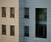 che affacciano anche verso la piazza interna alla Illa e quelli che non vi affacciano. La seconda eccezione consiste nella comparsa di “piccole” finestre di 140x180 cm, dietro le quali si trovano i negozi al primo piano del centro commerciale [26]. Ricordiamo che nel prospetto lungo la Diagonal il primo piano è scandito da grandi fori rettangolari di 590x240 cm. Alcune misure cominciano quindi a diminuire, inclusa l’altezza del basamento, che si riduce a 4 corsi in prossimità dell’accesso all’edificio da Carrer Anglesola9. Gli architetti, attraverso questo passaggio in angolo, portano all’interno del manufatto gli stessi elementi che ne compongono l’esterno. Si ottiene così, lungo questo percorso che nasce come prolungamento della strada diagonale che taglia il piccolo ensanche di Les Corts, una piazza coperta che ci parla della città che sta fuori e da cui parte, come si trova definita nel verbale della giuria a conclusione della Consulta, la «strada coperta» parallela alla Diagonal che struttura la galleria commerciale10. È questo un punto nevralgico del progetto dove si concentrano le relazioni con gli spazi circostanti. Da qui infatti sono facilmente raggiungibili, attraverso passaggi o scale mobili, oltre che visibili, Diagonal, Numància, il centro di Les Corts, la