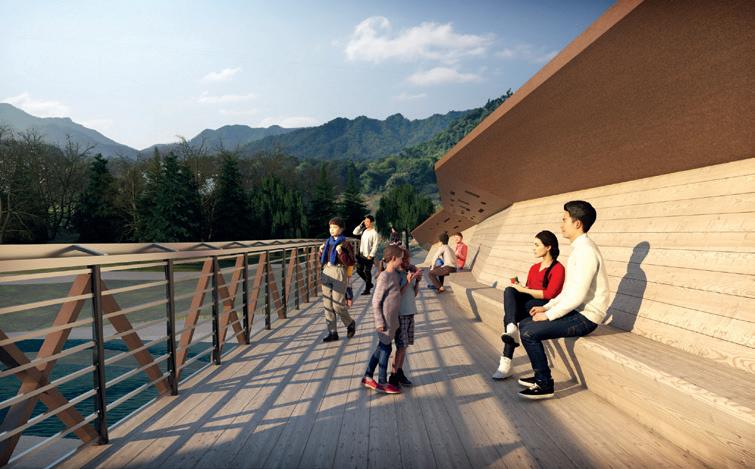 Di definire, o forse ri-definire nella passerella, l’idea del paesaggio montano, della Valle d’Aosta, l’idea del luogo, l’idea di rappresentazione del ponte in legno sul torrente e della sua memoria.