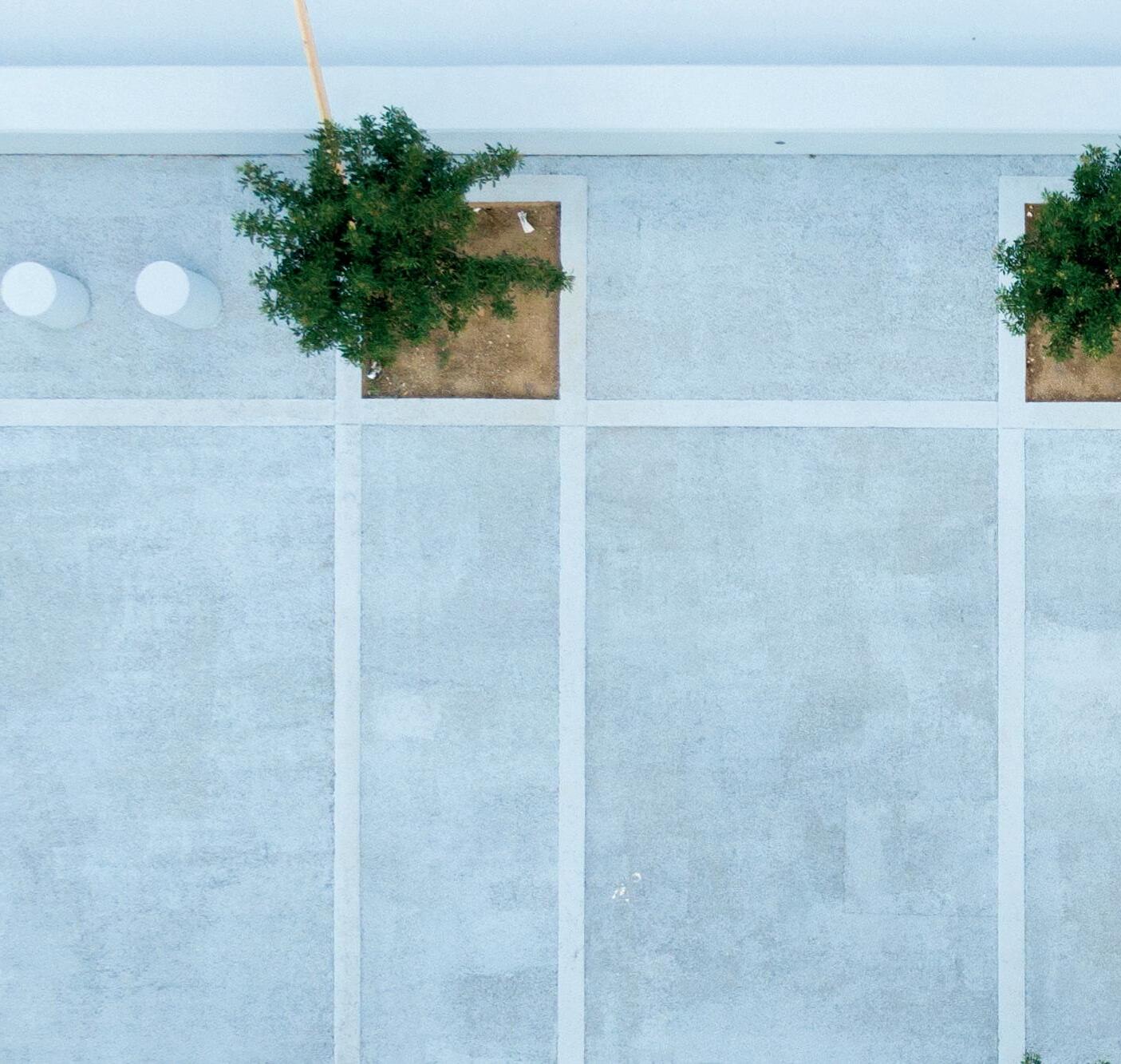 Un reticolo regolare, scandito dal posizionamento dei nuovi alberi, ha generato l’impianto planimetrico del progetto che emerge chiaramente nel disegno della pavimentazione. Si è scelto di utilizzare un calcestruzzo permeabile a granulometria fine, allo scopo di trasferire le acque piovane nel sottosuolo.