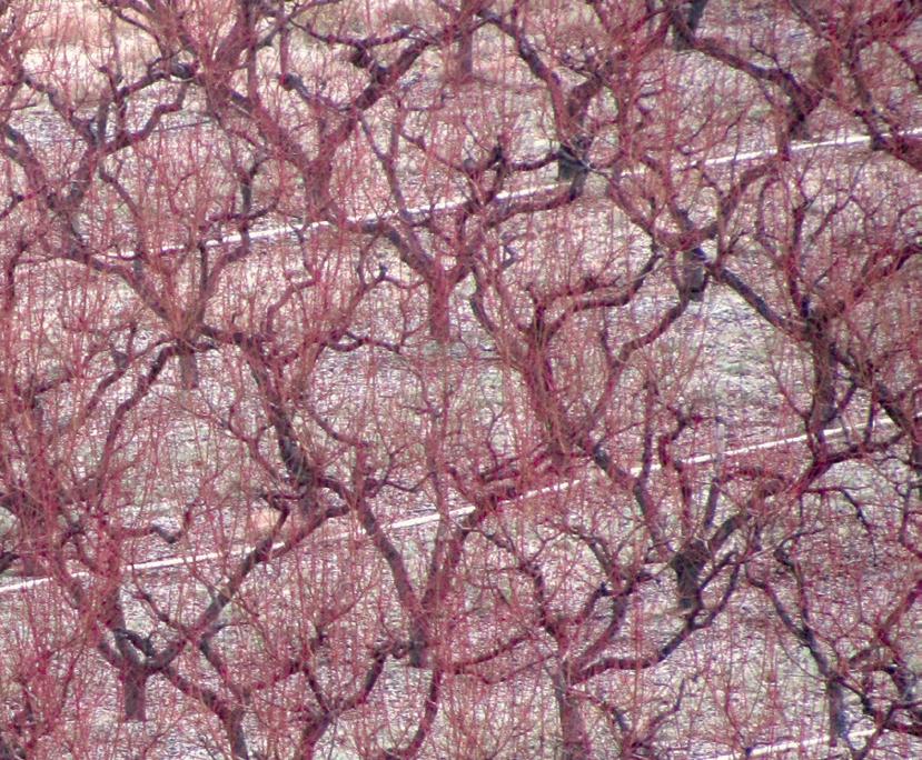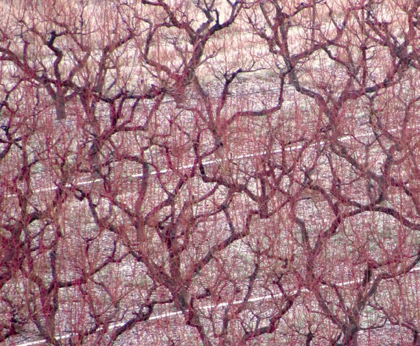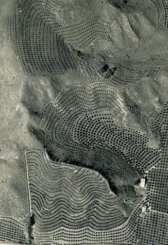 The plantig layout of the orchards follows the contour lines.