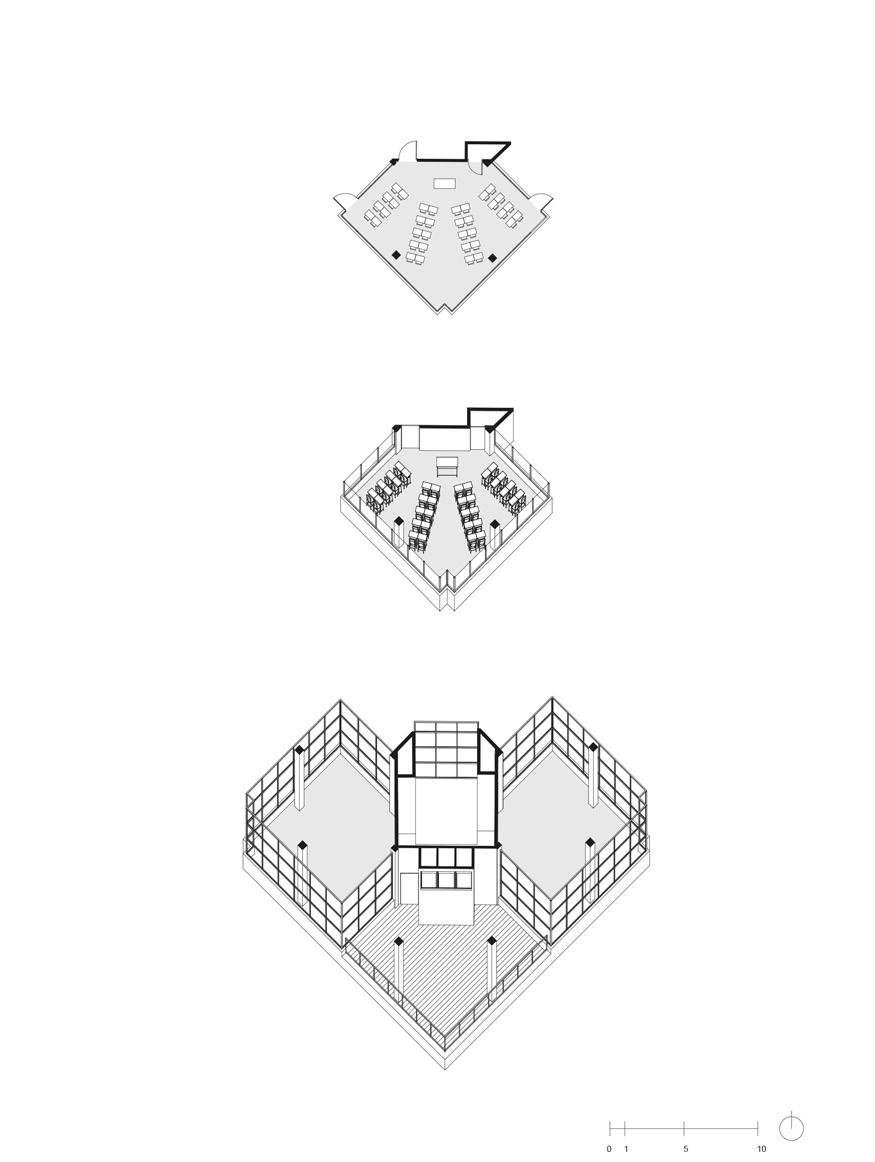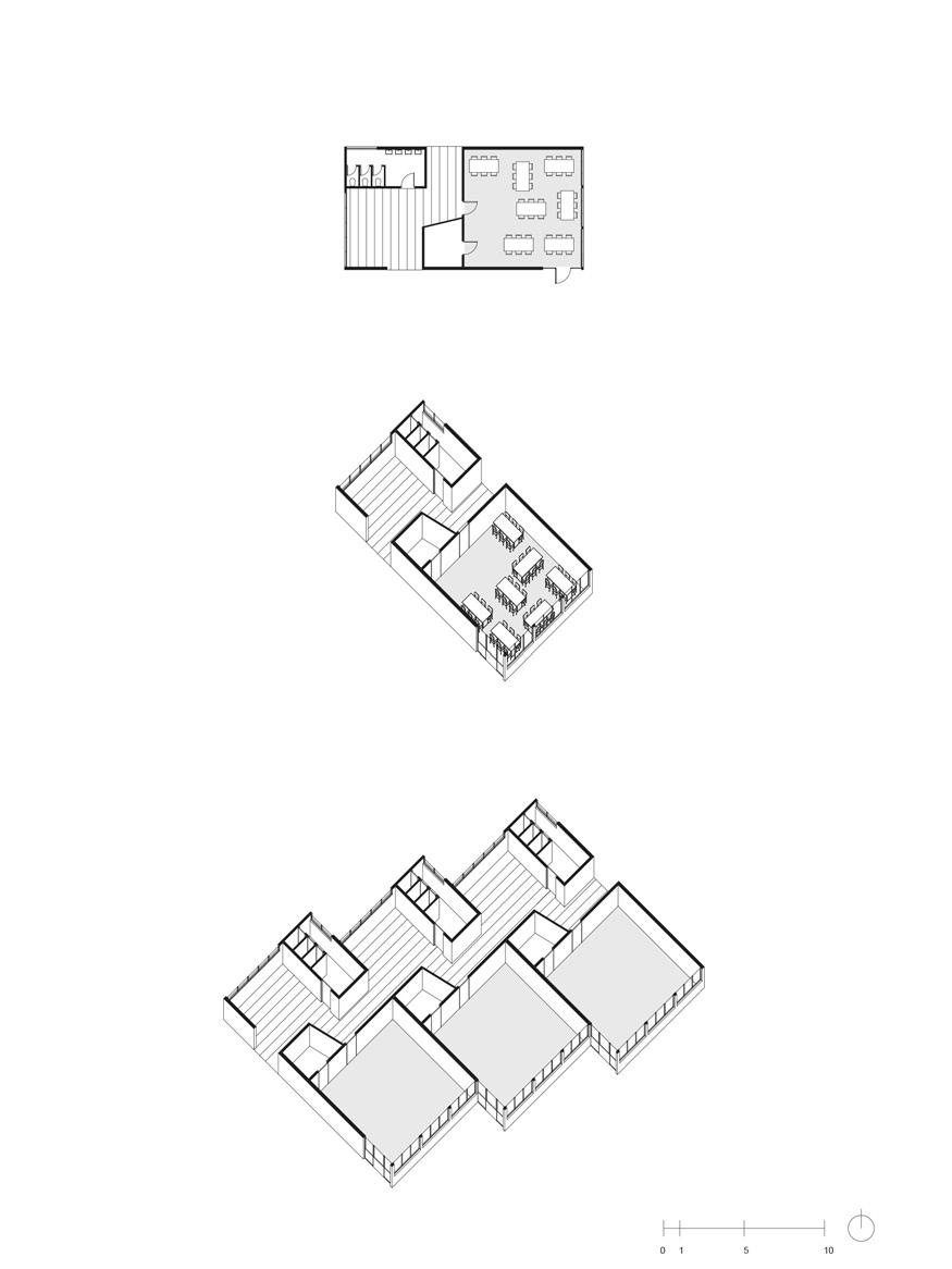 Aurelio Galfetti, Flora Ruchat-Roncati, Ivo Trumpy, Scuola Elementare a Riva San Vitale, Ticino (Svizzera) 1961-1964. Assonometria dell’aula scolastica (ridisegno)