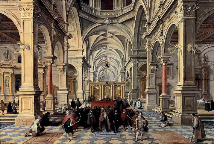 Un’immagine che trova una straordinaria coincidenza figurativa nelle tante rappresentazioni di interni di chiese, alle volte solo immaginate, restituite per mano dell’architetto, pittore e disegnatore Bartholomeus van Bassen2 e che circoscrive con estrema chiarezza il problema dell’universalità e singolarità dello spazio architettonico nell’interpretazione di un tema collettivo.