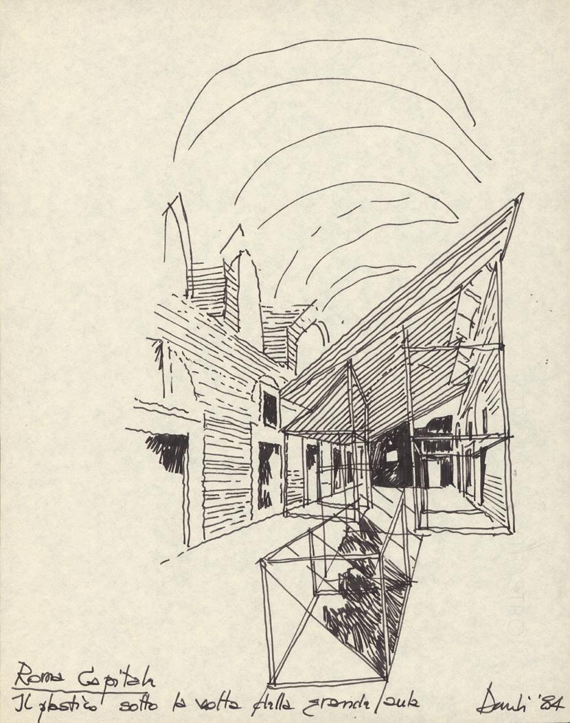 Costantino Dardi, schizzo per l’allestimento della mostra Roma Capitale 1878-1911. Architettura e urbanistica, Mercati di Traiano, Roma, 1984.