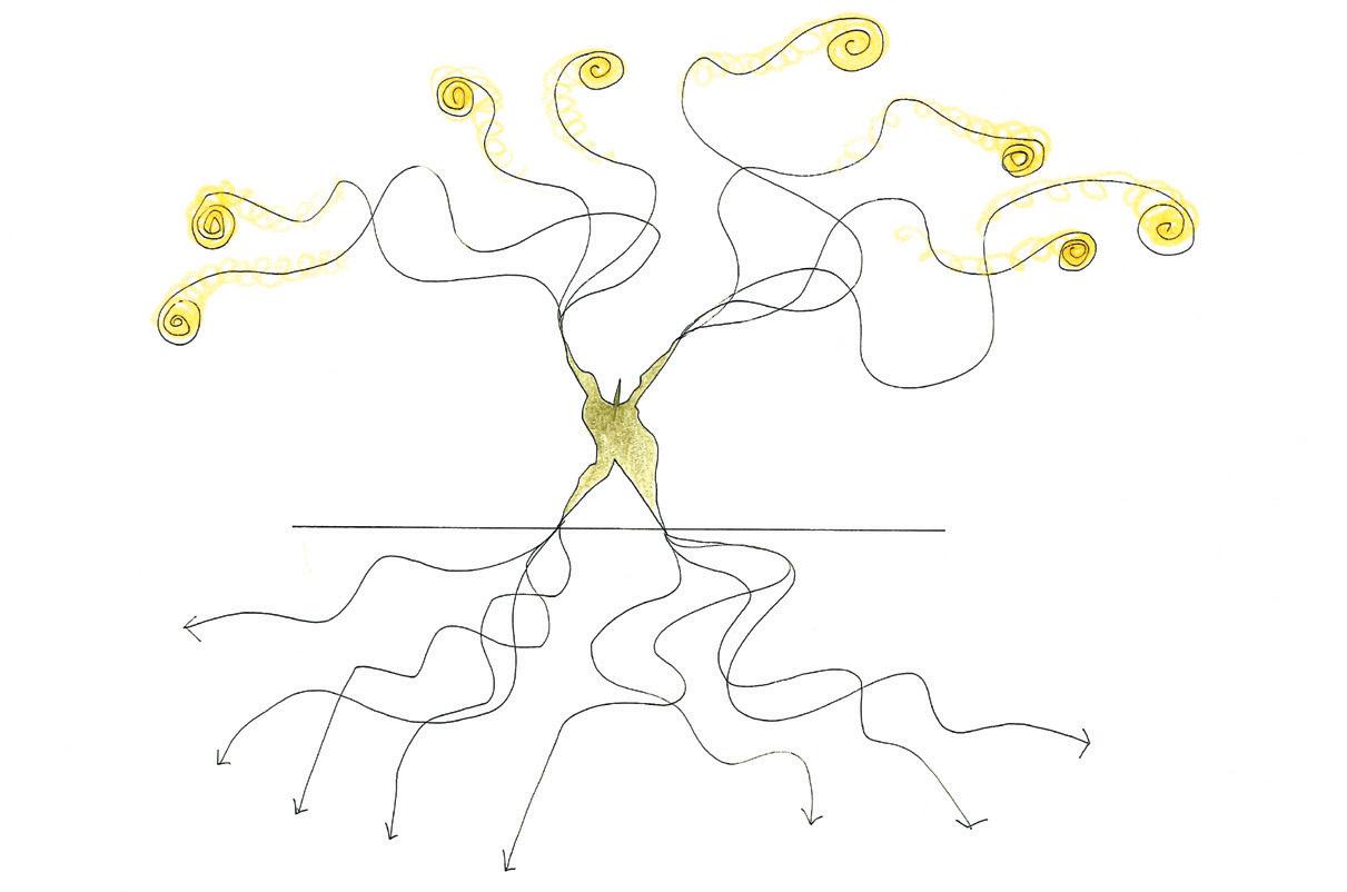 Un sogno dove le radici erano anche fioriture e gli intonaci diventavano gialli come la terra morenica che stava sotto i piedi ed attorno alle radici.