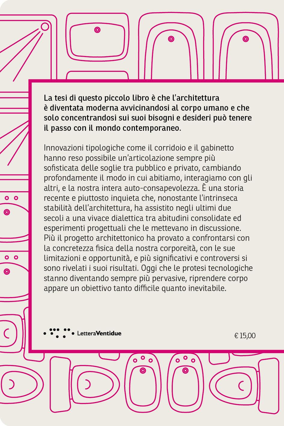 Recentemente, anche grazie alla crescente integrazione con la tecnologia e i fenomeni di dematerializzazione e virtualizzazione a essa connessi, il corpo è diventato una delle questioni più controverse e dibattute, dentro e fuori il nostro campo disciplinare. Gli esseri umani contemporanei sono il prodotto di un processo millenario di potenziamento protesico. Gli strumenti tecnici, e l’architettura tra essi, caratterizzano la nostra specie, almeno quanto il linguaggio. Tutto, dalla nascita alla morte, è oggi mediato da dispositivi che si interpongono tra la realtà delle cose e l’esperienza che ne facciamo5. Di conseguenza, il coinvolgimento del corpo tende a scomparire dietro a interfacce sempre più sofisticate, al punto che la prospettiva di una sostituzione delle nostre migliori facoltà intellettuali da parte delle applicazioni