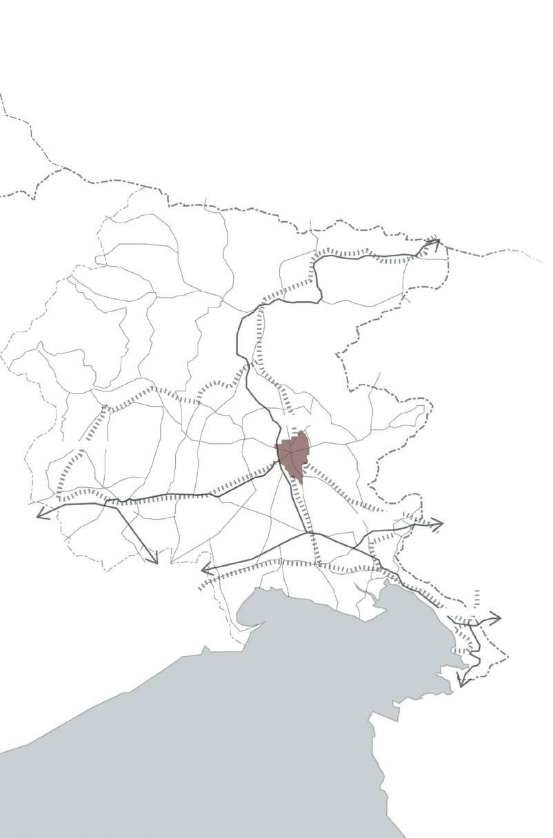 AUSTRIA VENETO SLOVENIA GORIZIA UDINE TRIESTE ADRIATIC SEA PORDENONE Railway Main roads Regional limits Province Other roads