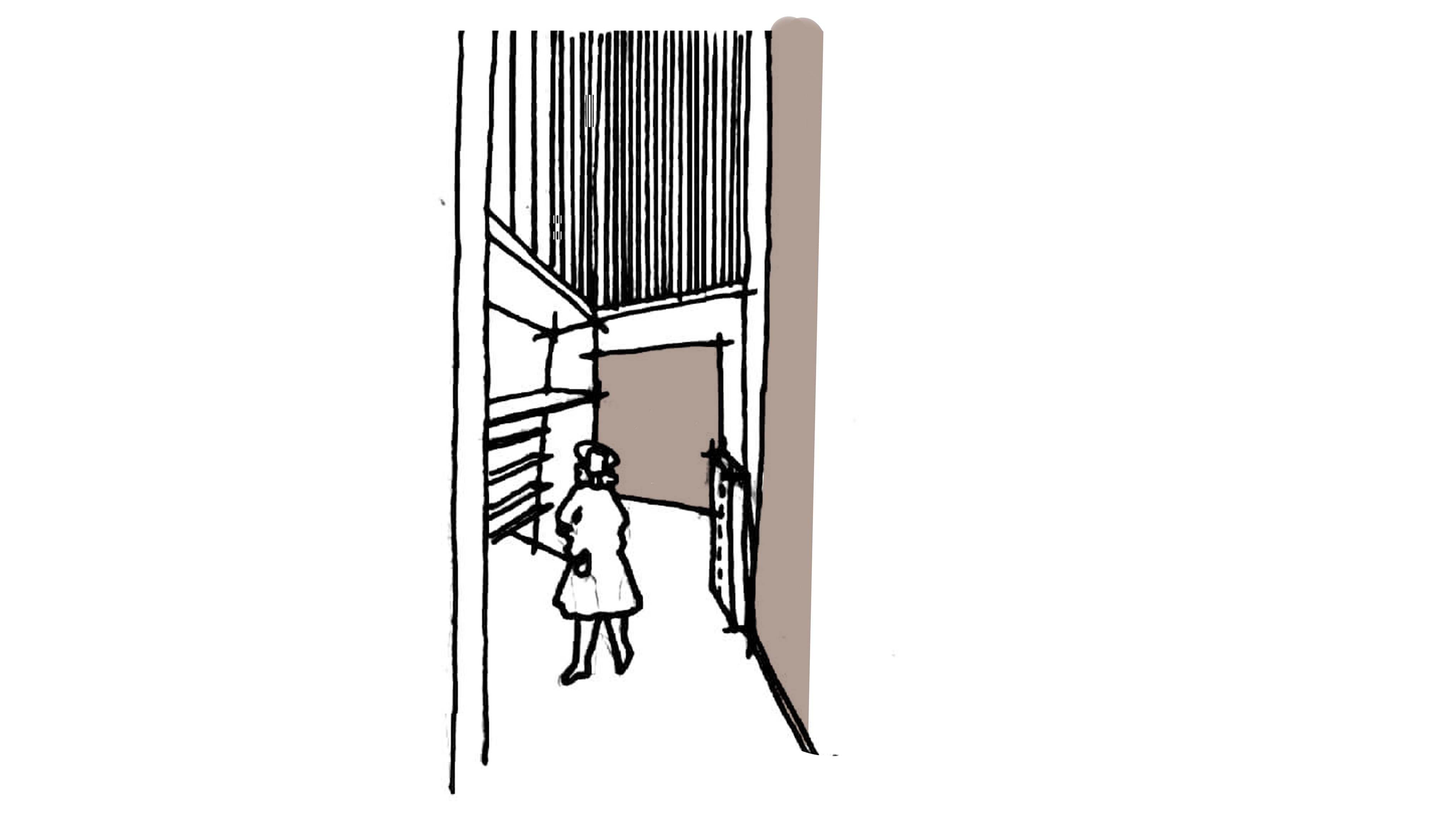 Una planta arquitectónica girada fue el inicio, algo propio que permitiera explotar los ángulos al interior, sin dejar de formar ángulos de 90° para aprovechar el diseño más cómodo del mobiliario. La condensación de ideas, sin embargo, ayudo en encontrar una intención estereotómica al hacer más notables todos los estímulos al interior y al exterior, marcarlos y dejarlos evidentes. La pesadez de los muros exteriores, lo sólidos que serán, provocará una sensación de monumentalidad. Hay dos personas viviendo al interior, ambas lidiando con lo imponente.