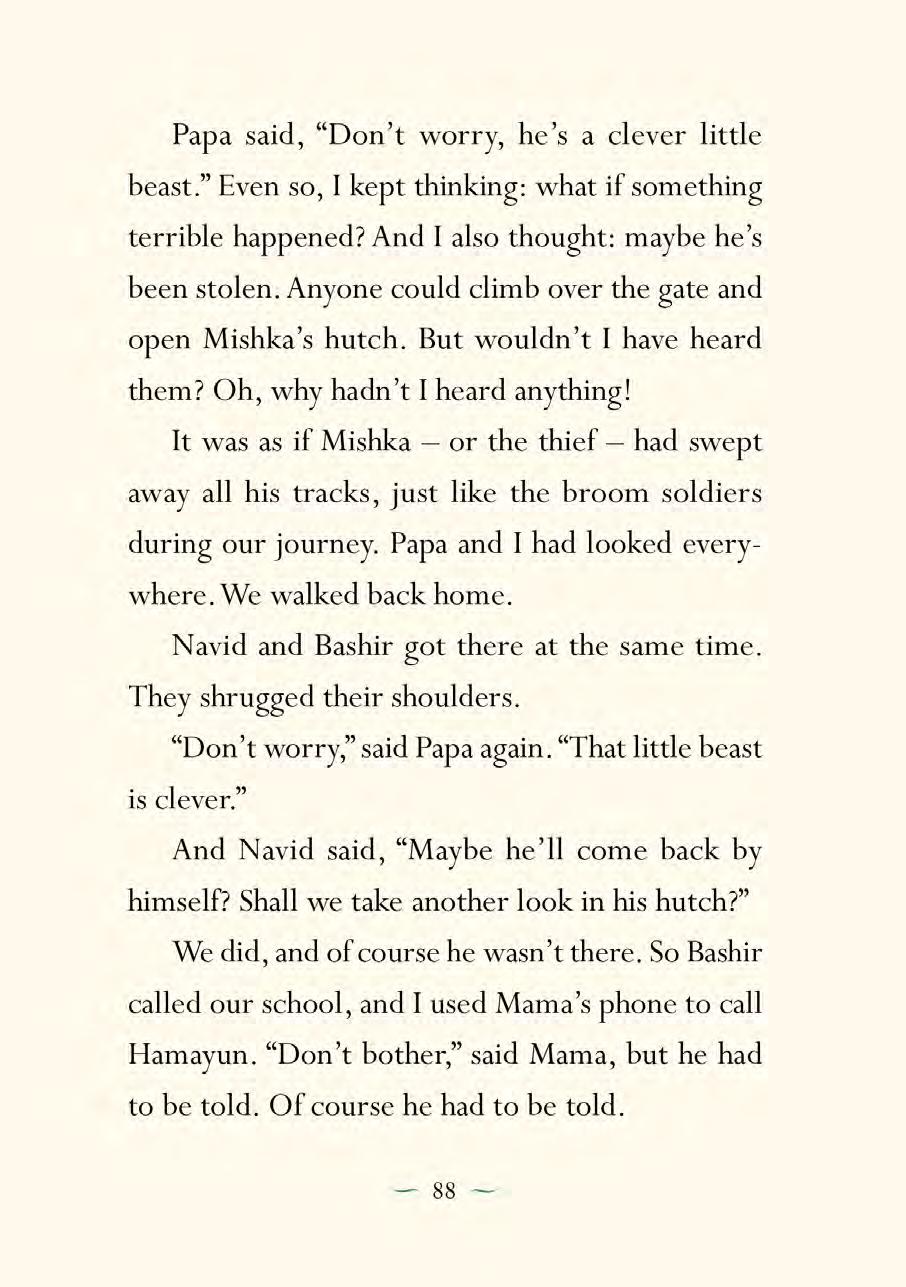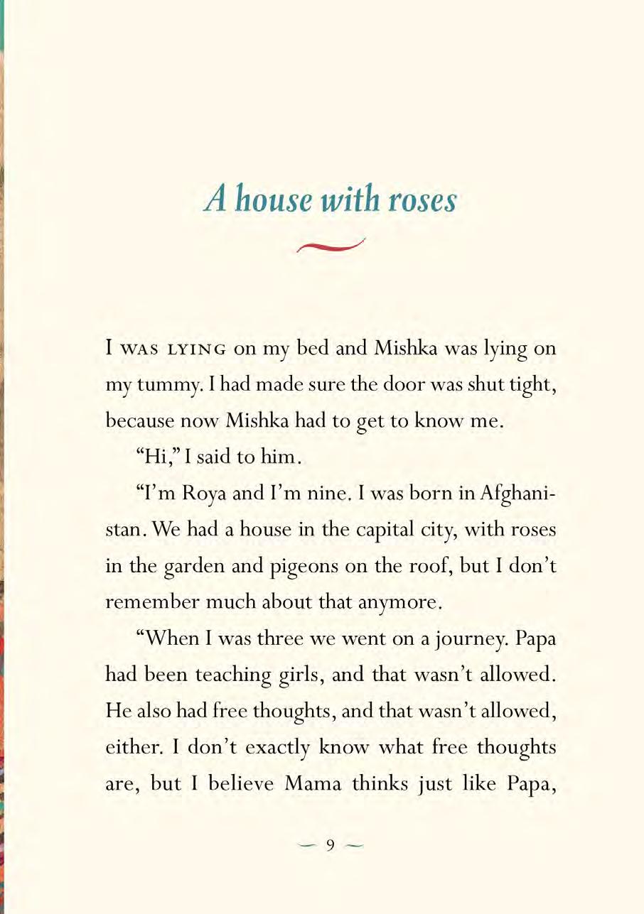Roya, her three brothers, and their parents have a new family member— Mishka, a bunny rabbit. He soon becomes a beloved part of their new home and gradually, the rabbit—and also Roya—get to hear the story of the family's journey from Afghanistan to the Netherlands. Told from different perspectives every time: big Bashir, gentle Hamayun, tough Navid, and sometimes Mom and Dad. Mishka and Roya listen.