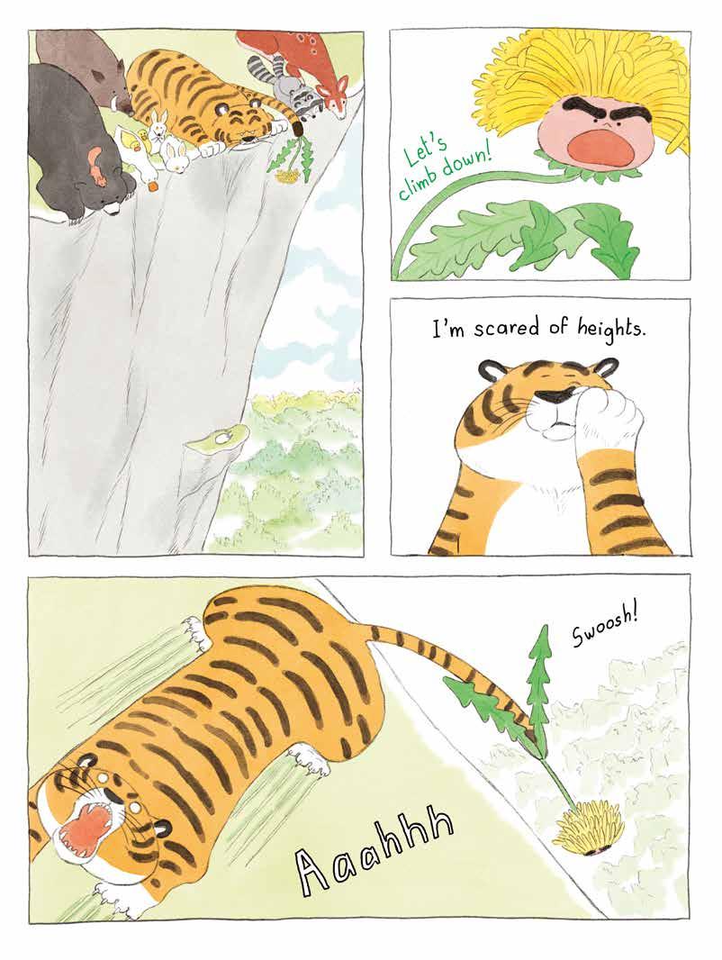 Stuck with each other, and against all odds, Tiger and Tail-Flower become fast friends and set off on a series of adventures. Rescuing Mother Hen and her lost egg from a cliff. Fording a river for Rabbit, Hedgehog, and Raccoon. Throwing a big party with everyone in the forest!