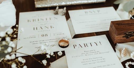 Print is becoming more intentional. Rather than elaborate suites, couples are opting for clean, welldesigned invitations that focus on quality. Popular styles include minimalist layouts, modern typography, soft color palettes, and tactile paper choices.