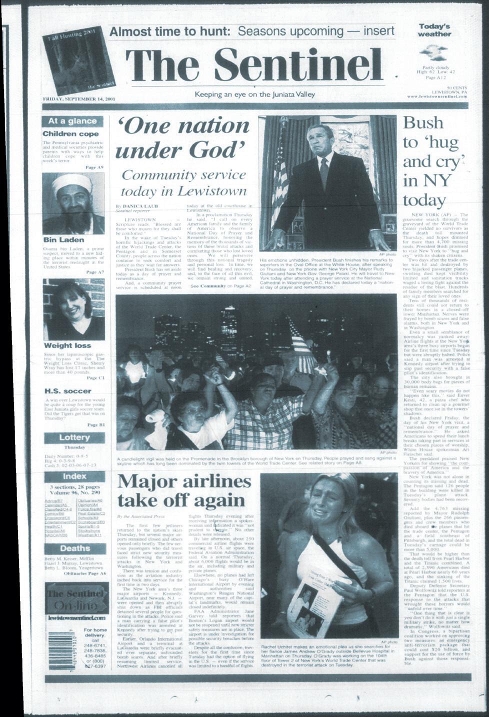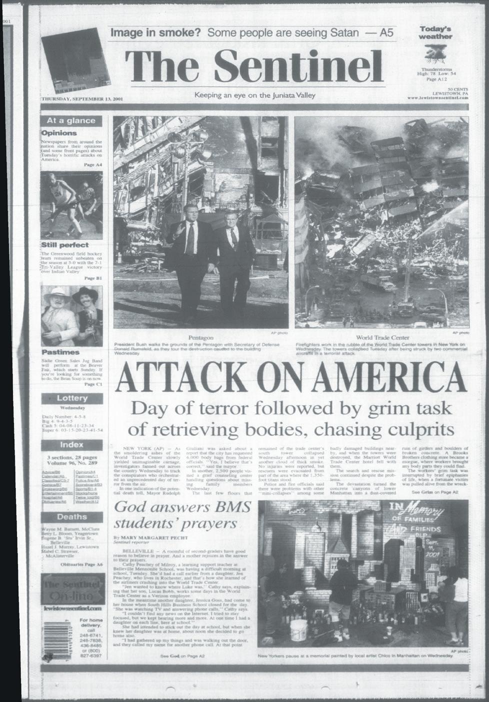 2—Lewistown, PA Monday, Sept. 11, 2023 The Sentinel 1211 W. Fourth Street, Lewistown, PA 17044 • (717) 248-9611 • Vending Machines • Music • Amusements • Pool Tables In Honor and Memory of those who have and do sacrifice so much so we can be safe and free.. SENTINEL COVERS FROM THAT WEEK