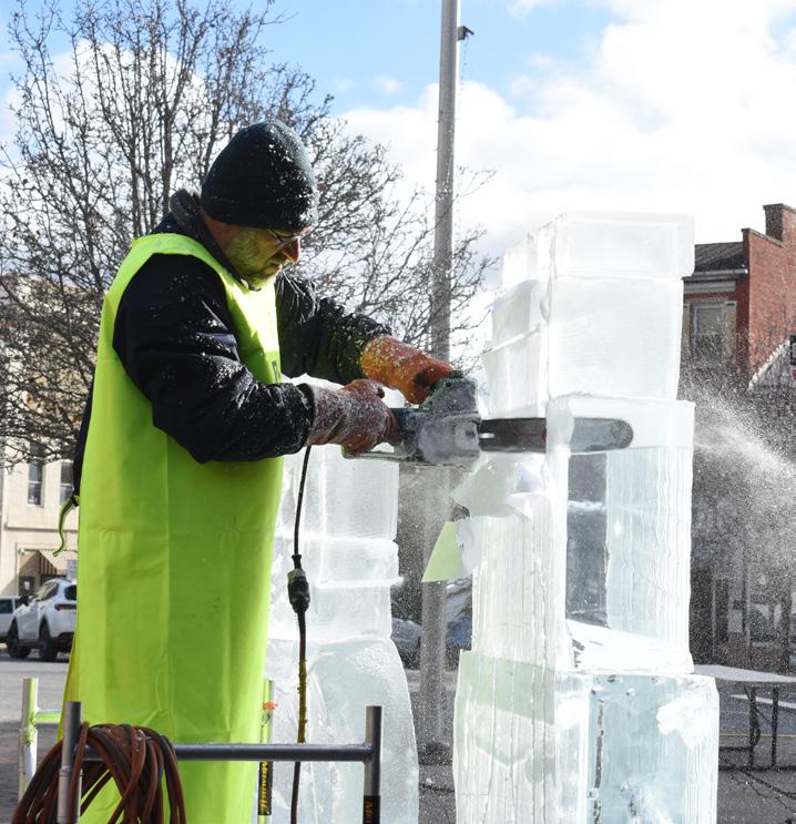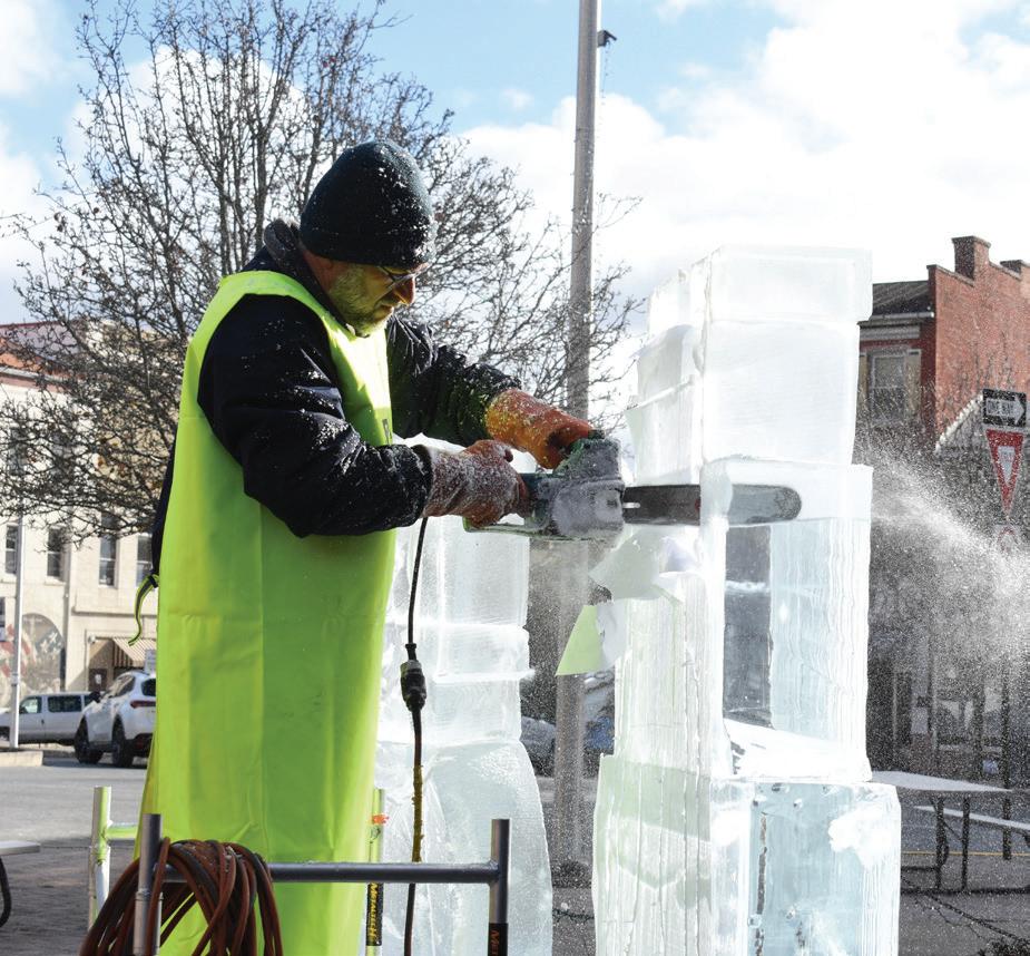 The Juniata River Valley Visitors Bureau extends a heartfelt thank-you to all the sponsors who make our annual ice gallery possible—please see page 6 of the map for a full list of supporters. This year’s gallery features both small and large hand-carved sculptures throughout Monument Square, all crafted by the talented team at First Night State College Ice Sculptors. We are grateful for their creativity, craftsmanship, and long-standing partnership. Looking ahead, the 2026 Festival of Ice will celebrate America’s 250th birthday with the theme “American Adventure,” featuring patriotic ice designs. If you or your business would like to sponsor a patriotic sculpture next year, please contact the Visitors Bureau to reserve your spot.
