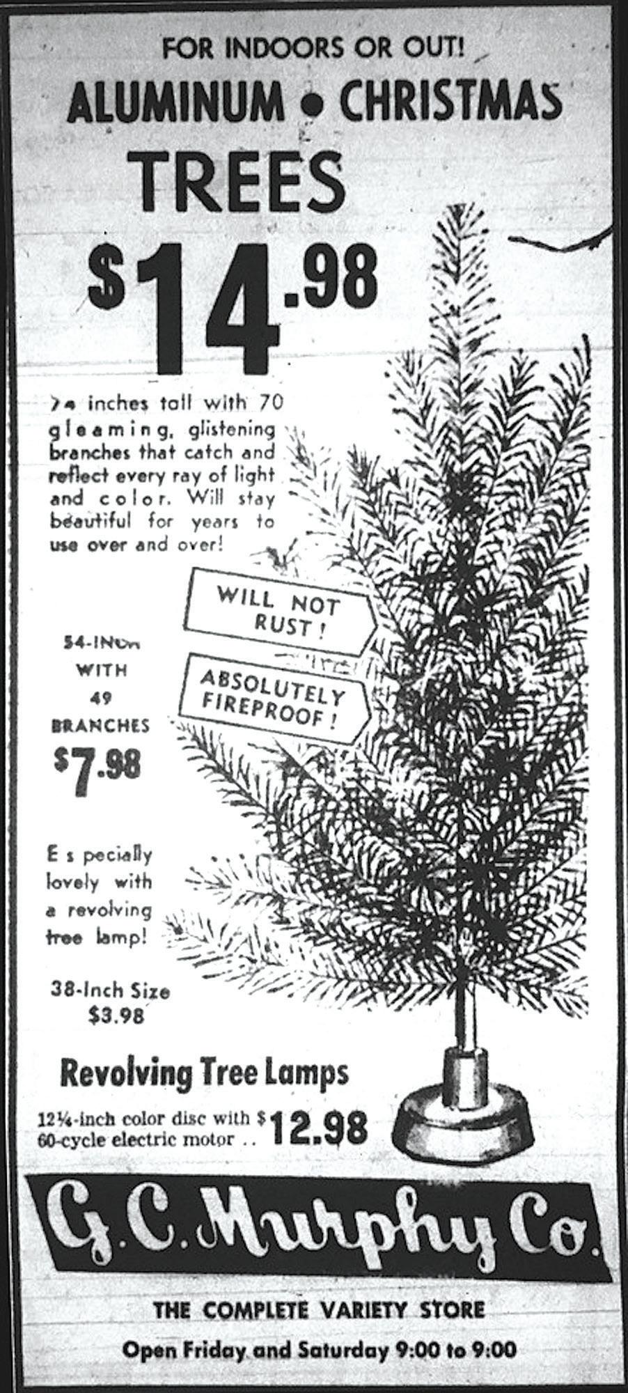 or McCrory’s. Each was dusted with “snow,” trimmed in sparkly glitter, and flanked by tiny bottle-brush trees that looked as though