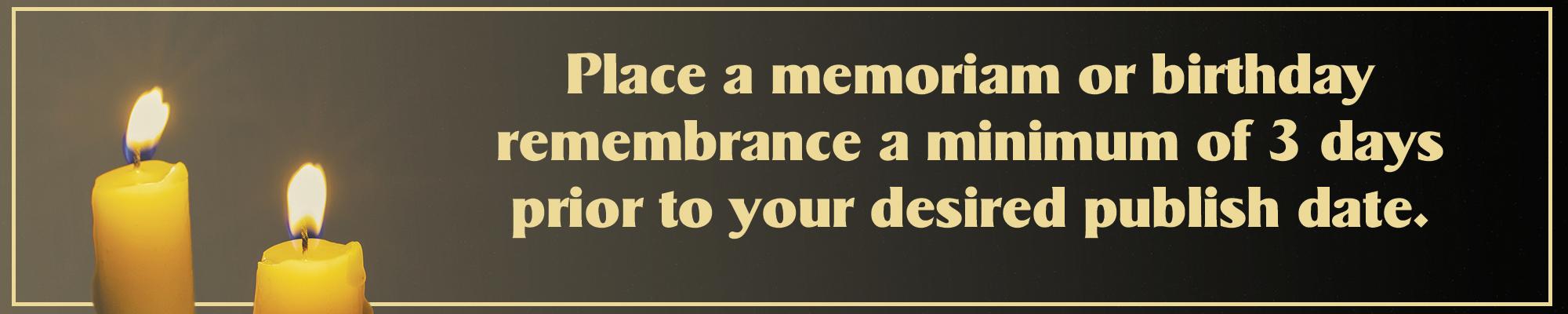 Full obituaries from the month of November will be published in the December Publication in this edition is included with the price of a full obituary.