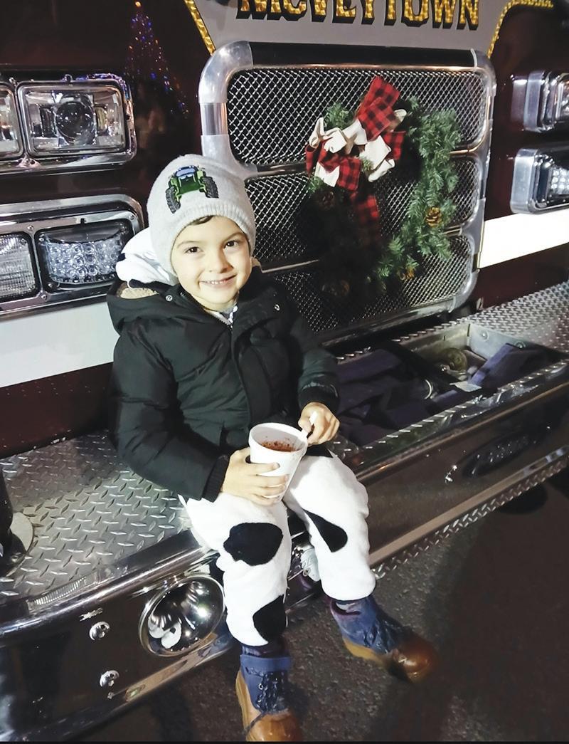LEFT: Oliver Miller, 5, of McVeytown, PA, asked Santa for a dirt bike or remote-controlled truck at McVeytown’s annual Christmas Around the Square on 12/06/25. Hot cocoa with sprinkles, whipped cream, and marshmallows was provided by McVeytown Harshbarger’s Sub N’ Malt.