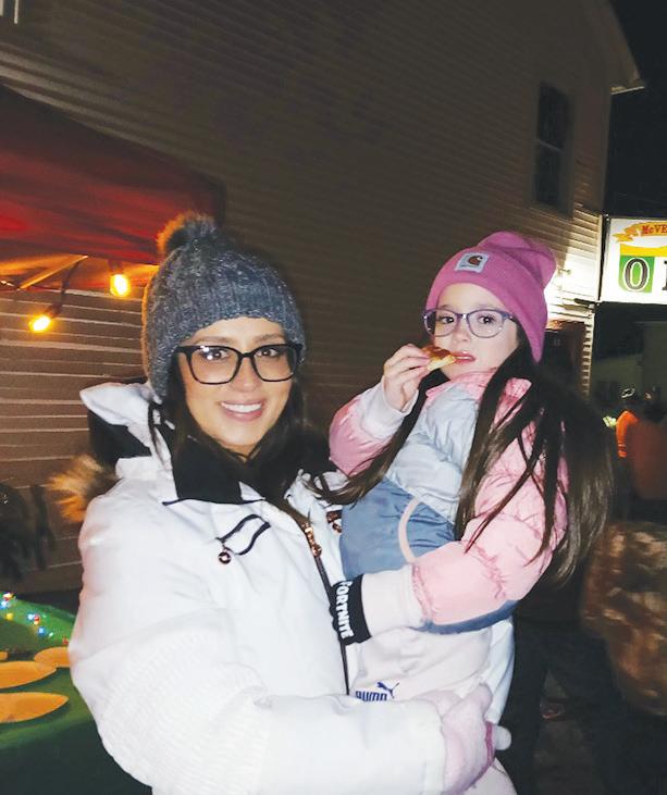 Sentinel photo by KARI SWEIGART Chelsea Goss and 5-year-old daughter Sylvie, of Strode’s Mill, PA, enjoyed a warm slice at McVeytown’s annual Christmas Around the Square on 12/06/25. Free pizza to the public was provided by McVeytown OIP.