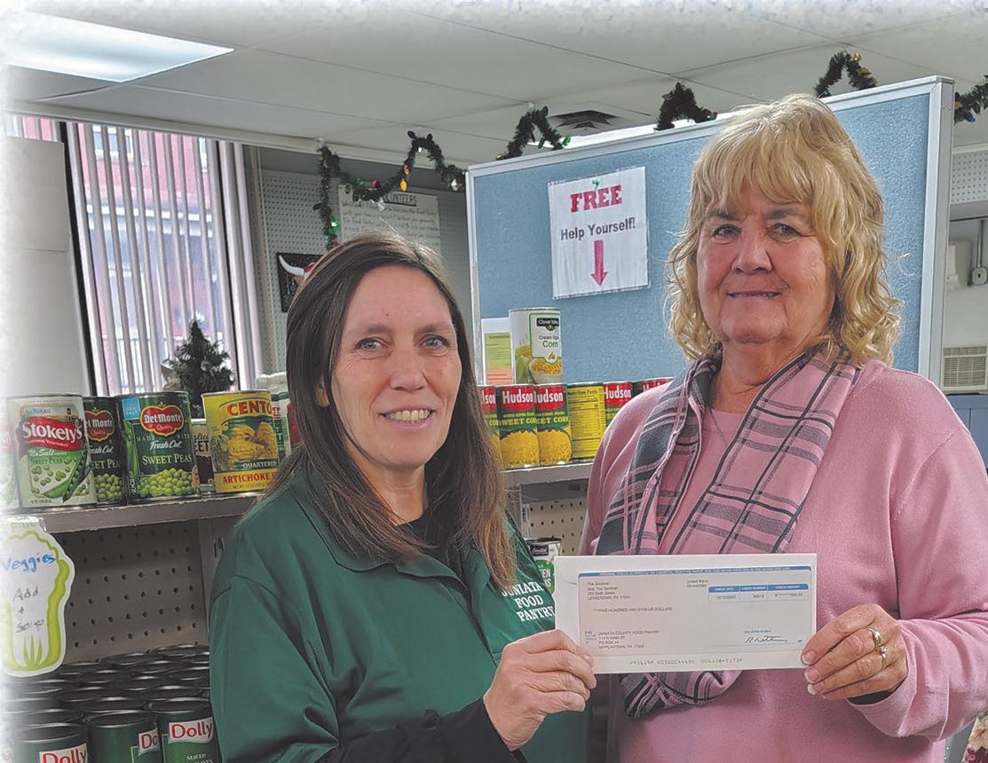 Juniata County Food Pantry, Inc. Executive Director Glenda Fultz (left) is presented with a donation from The Sentinel by Account Representative Karen Moyer. In total, the two organizations pictured received $1,000 for their programs through The Sentinel’s special Thanksgiving advertising campaign.