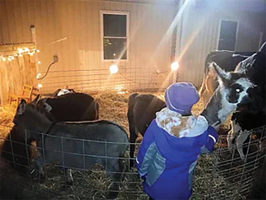 Sentinel photo by KARI SWEIGART Dryhouse Farm of Belleville, PA provided quite the mirthful menagerie at the Belleville Family Christmas Celebration on 12/12/25. The live manger scene included a cow with young calf, miniature horse and donkey, and an alpaca named “Tina”.