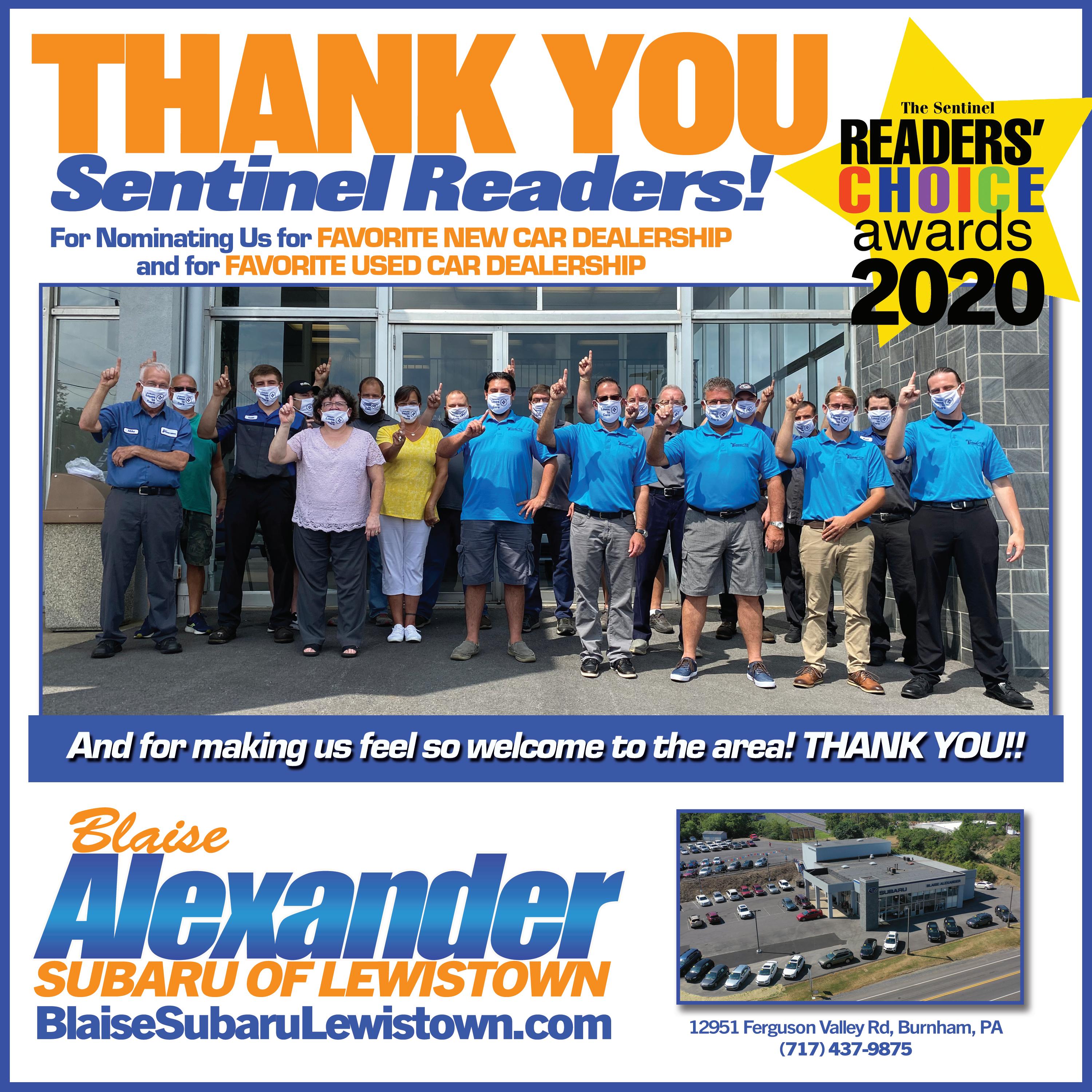 The Sentinel Readers’ Choice is designed to highlight locally owned and operated we allow nominated entrants from nearby counties or national companies. You can see more FAQ in the Q&A section at lewistownsentinel.com/readerschoice or if your question still is unanswered, you can email readerschoice@lewistownsentinel. com.