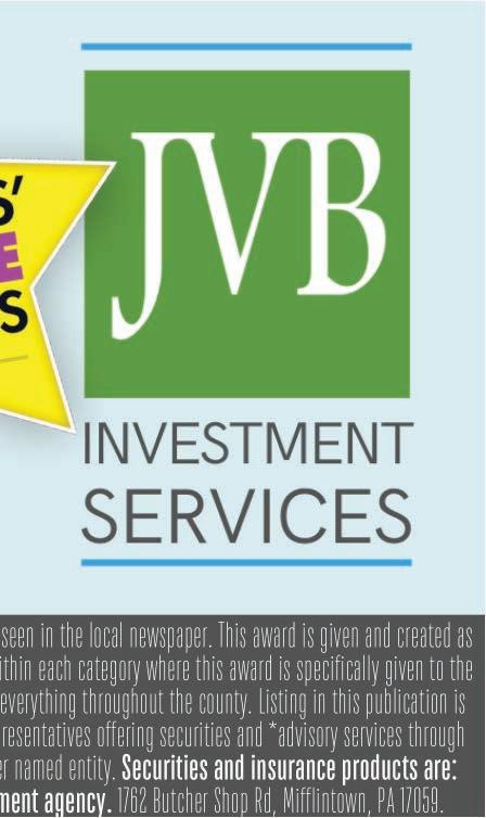 You’ll find the 2022 winners listed in bold with a crown and finalists announced within the pages of this edition as well as online at lewistownsentinel. com/readerschoice. Finalists were voted in the top three of their category and are listed in no particular order of finish.