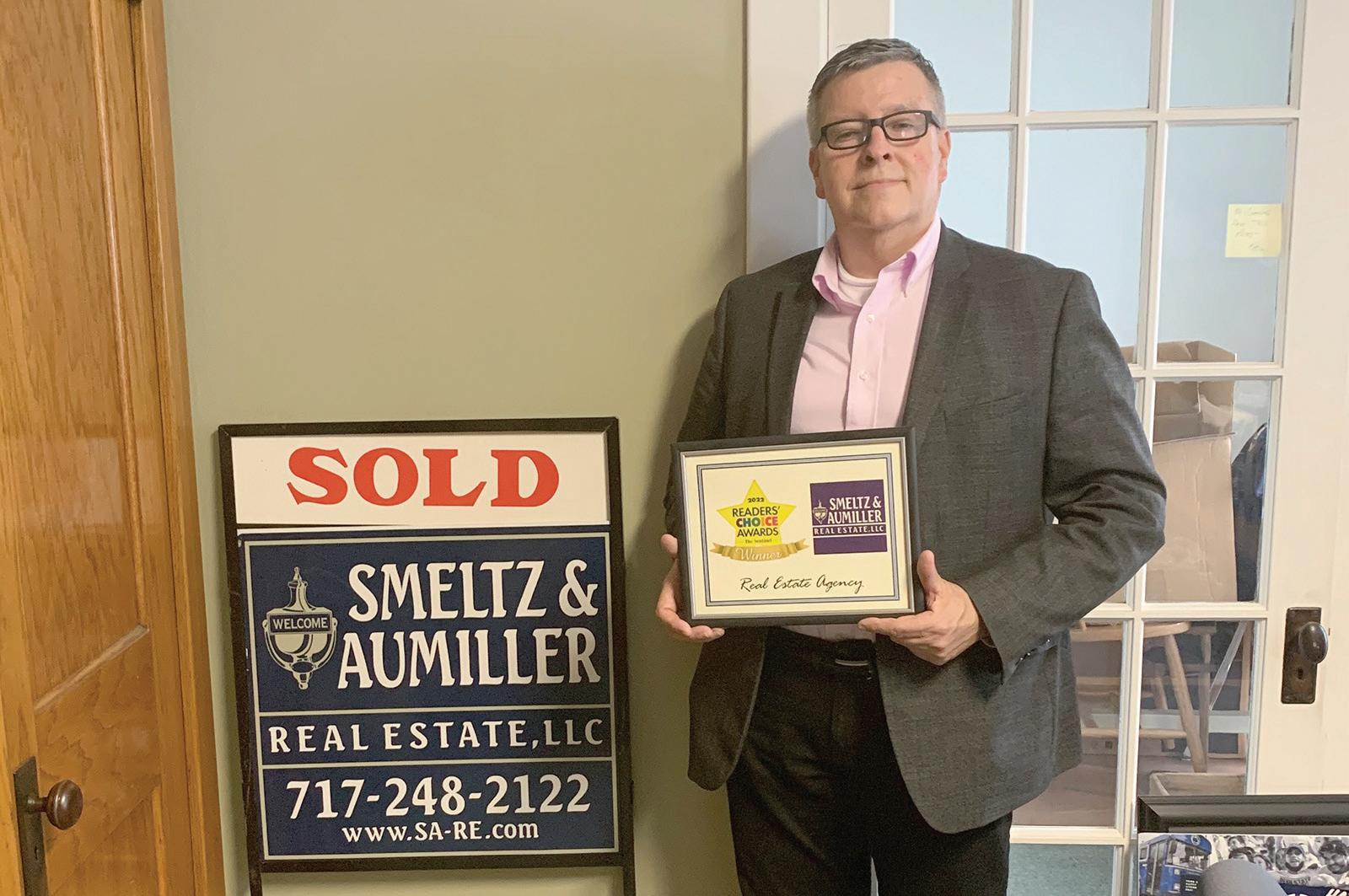 Richard Smeltz, broker for Smeltz & Aumiller Real Estate, LLC, accepts the award for Favorite Real Estate Agency in the 2022 Readers’ Choice survey.
