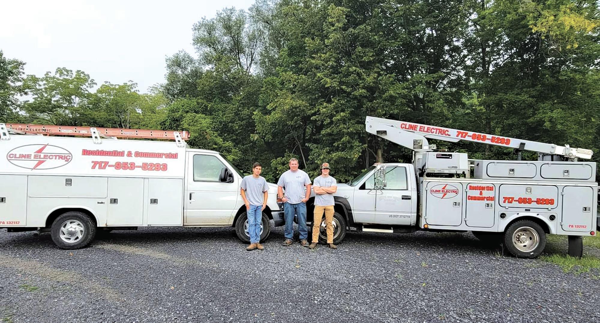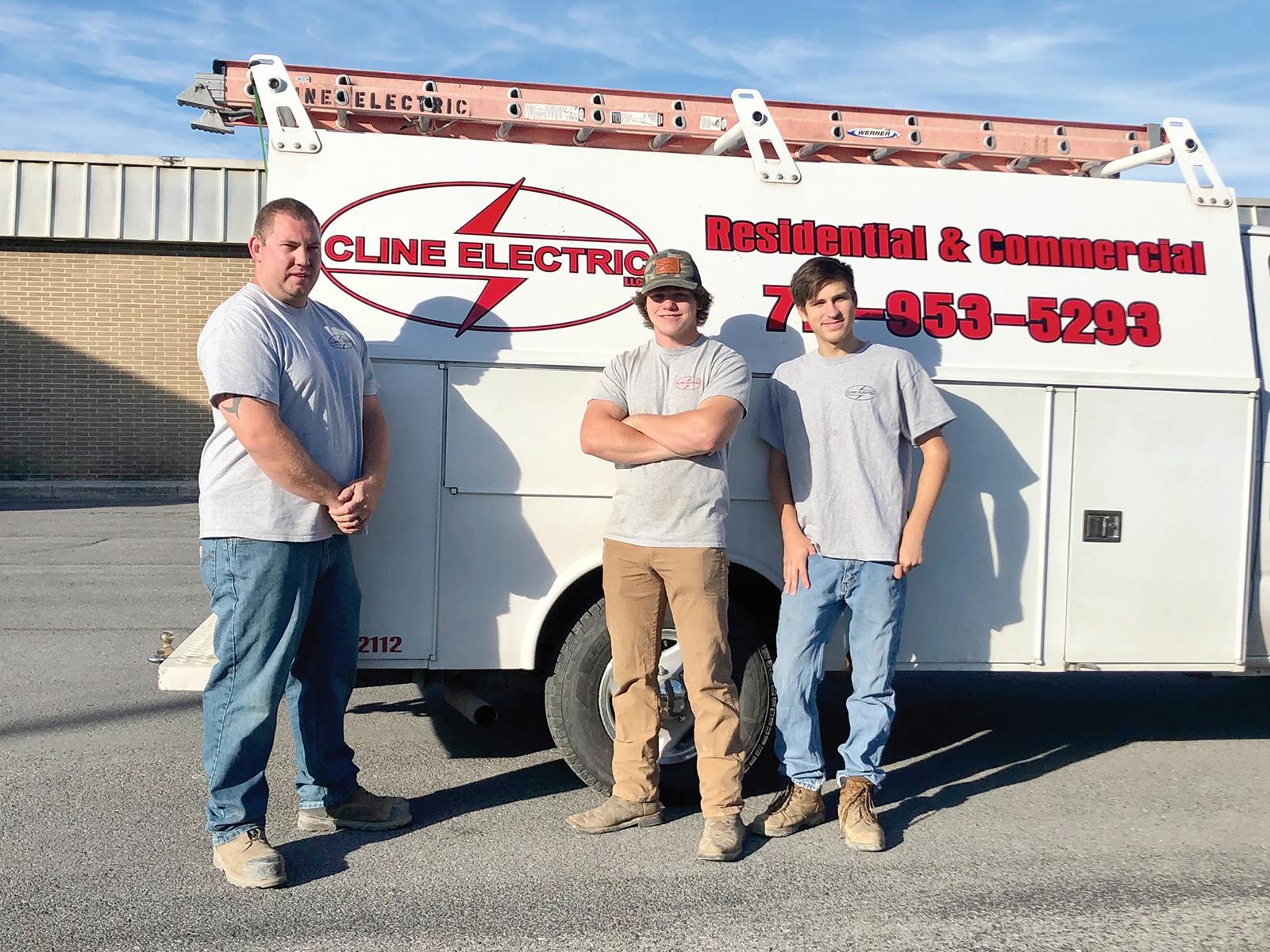 Cline Electric was voted the Winner in the Electrician cate gory for the 2022 Readers’ Choice awards. Pictured L-R are owner Ty Cline, Teeg Tate, and Ezra Kratzer.