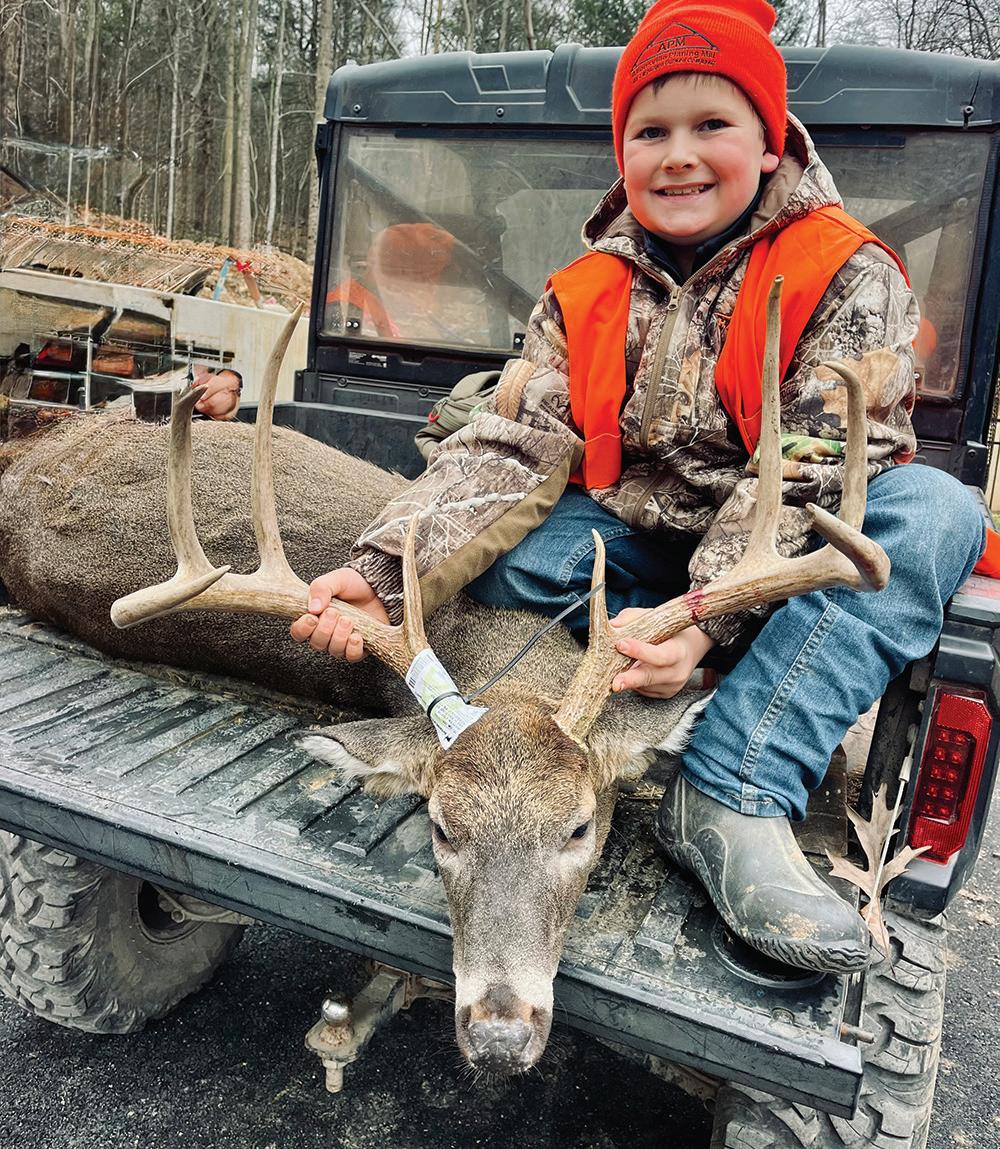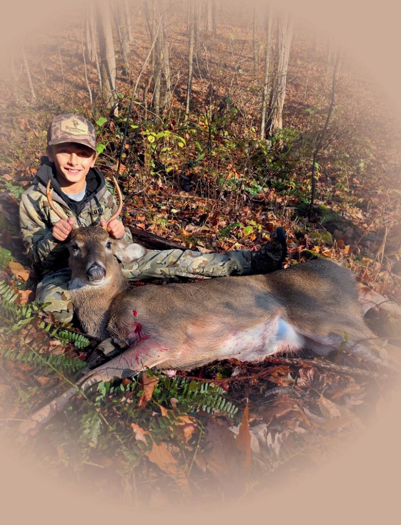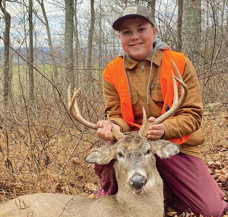 Grayson Orwig, McAlisterville Grayson’s frst ever buck! Shot at 6 years old at his family’s cabin in Huntingdon, with a 350 Legend, gifted by a close family friend.