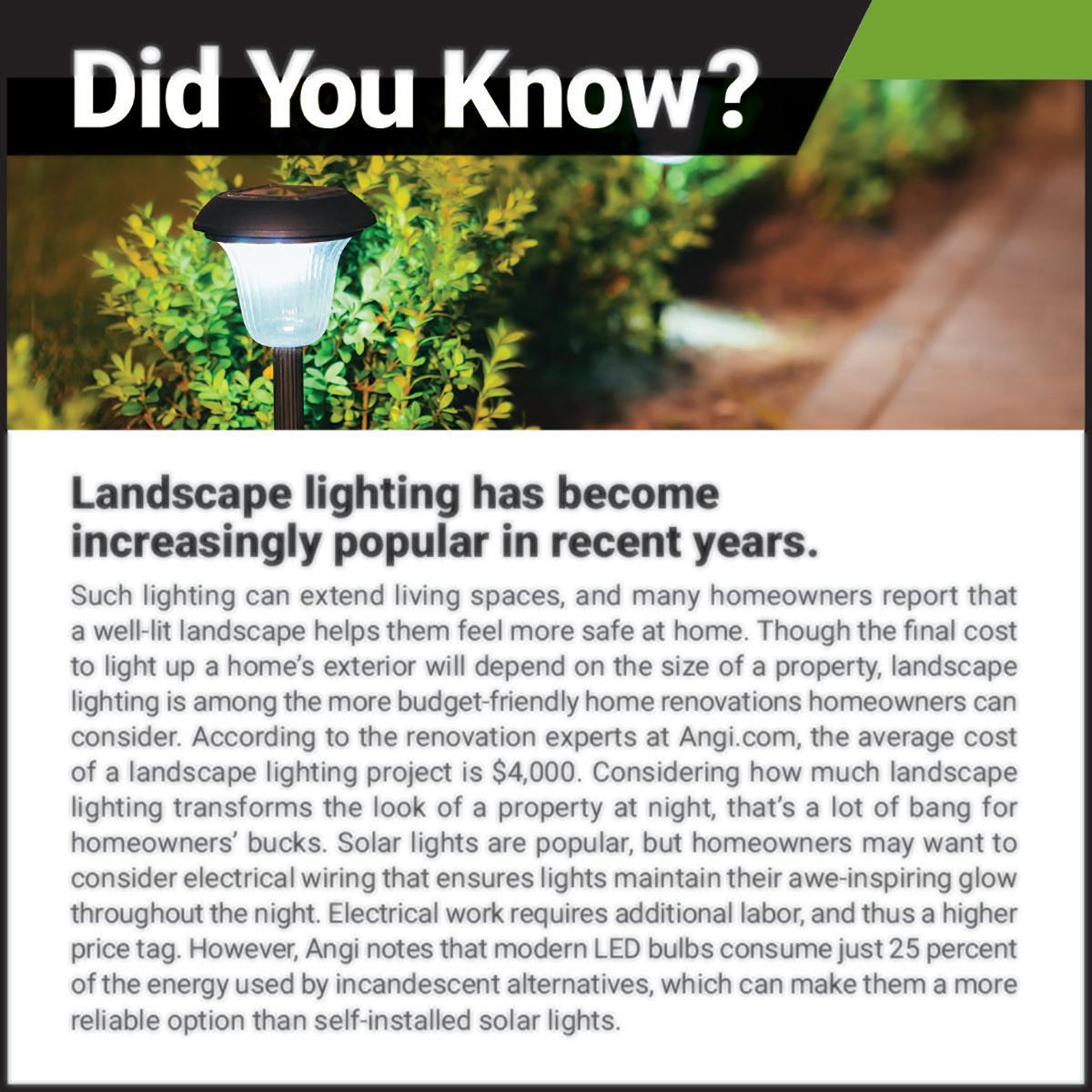 Updating front porch lights and accent lights around the property will cast a more positive glow on a home, both literally and figuratively.