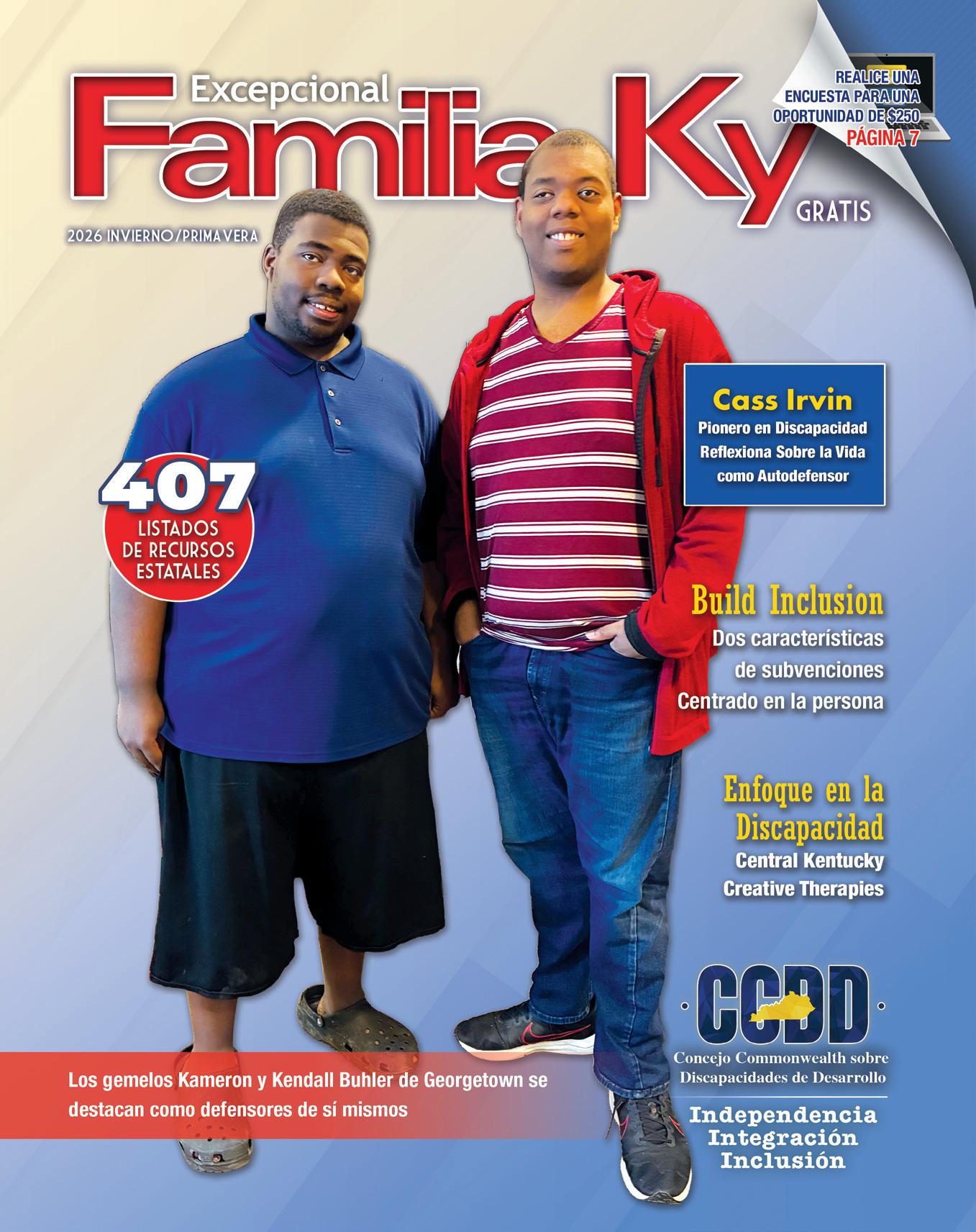 “Excepcional Familia KY” es publicado por Consejo de la Commonwealth sobre Discapacidades del Desarrollo 1024 Capital Center Dr., Frankfort, Kentucky 40601 (502) 564-7841 • CCDD.KY.gov