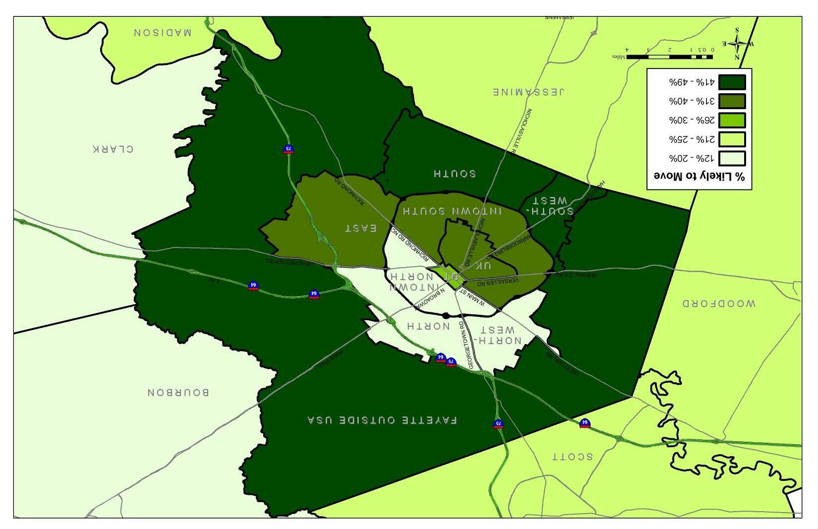 Downtown and In Town South are also most popular for those respondents who indicate that they would want to move within New Circle Road. In town North has significantly less interest overall.