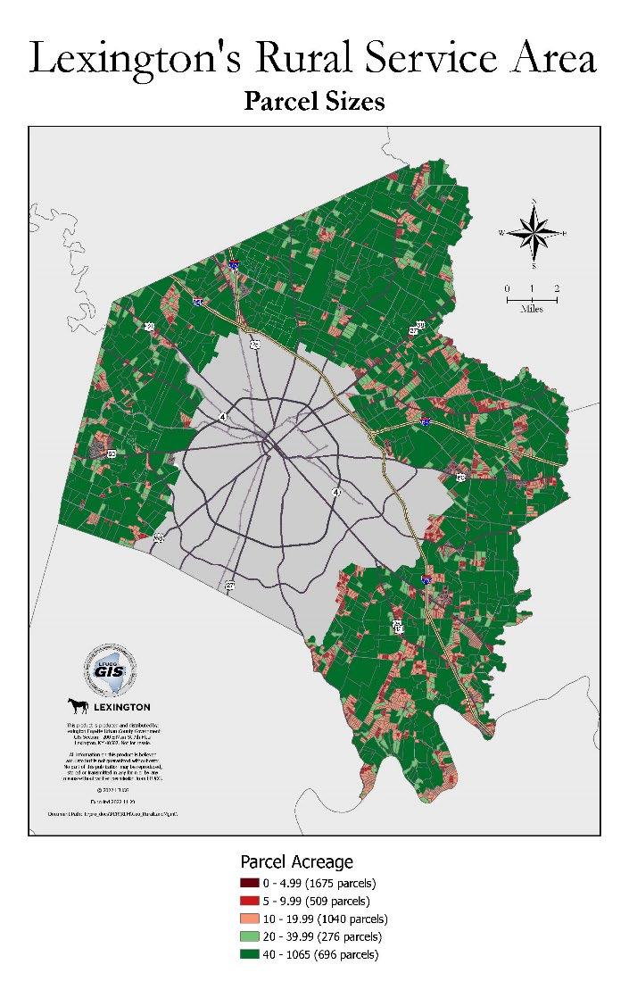 Additionally, further GIS mapping shows that 3,224 of the parcels in the Rural Area (76%) are less than 20 acres and therefore do not qualify for PDR easement purchase.